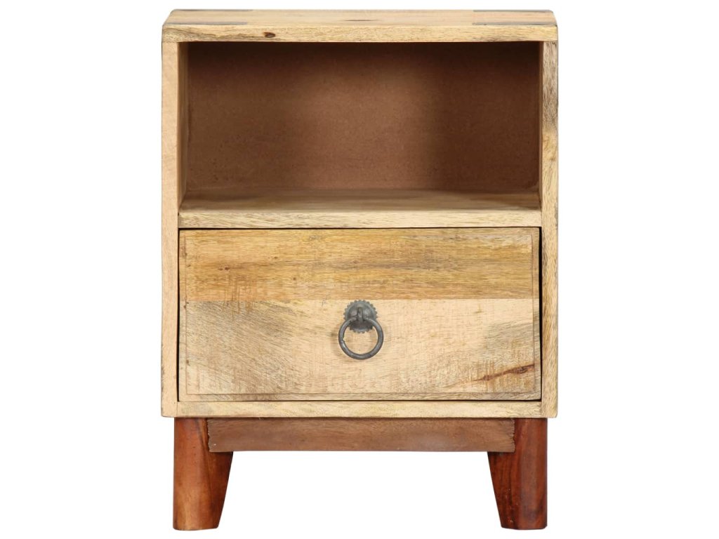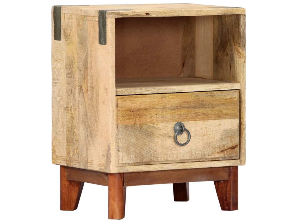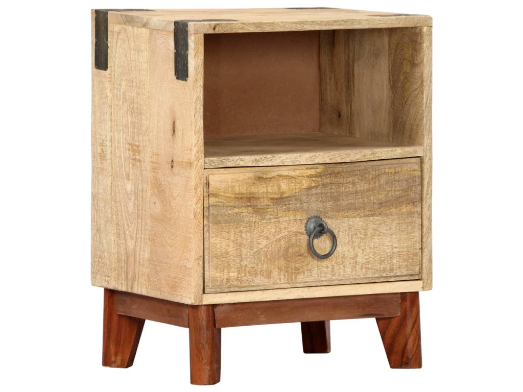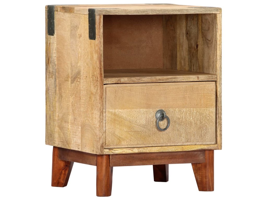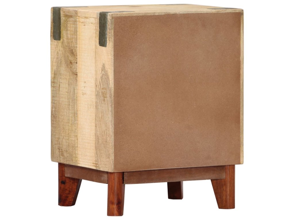 Noční stolek je vyroben z masivního hrubého mangovníkového dřeva, je tedy mimořádně stabilní a odolný. Mangovník má husté a robustní tvrdé dřevo, jehož povrch se vyznačuje překrásnými hnědými či zlatavými pruhy a liniemi. Na pevné desce stolku si můžete vystavit dekorativní předměty, jako jsou vázy a květináče. Ve skříňce najdete spoustu místa, kde si můžete úhledně uspořádat všelijaké věci. Její sestavení je jednoduché.