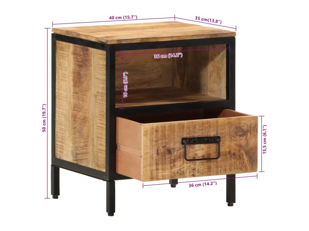 - Odolný materiál: Masivní mangovníkové dřevo je pevné tropické tvrdé dřevo, ze kterého se vyrábí robustní nábytek. Krásná kresba dřeva propůjčuje každému kusu nábytku jeho jedinečný a od všech ostatních lehce odlišný vzhled. Noční stolek je vyrobený z masivního mangovníkového dřeva, je tedy robustní a stabilní.