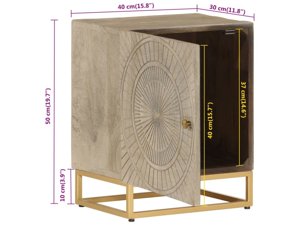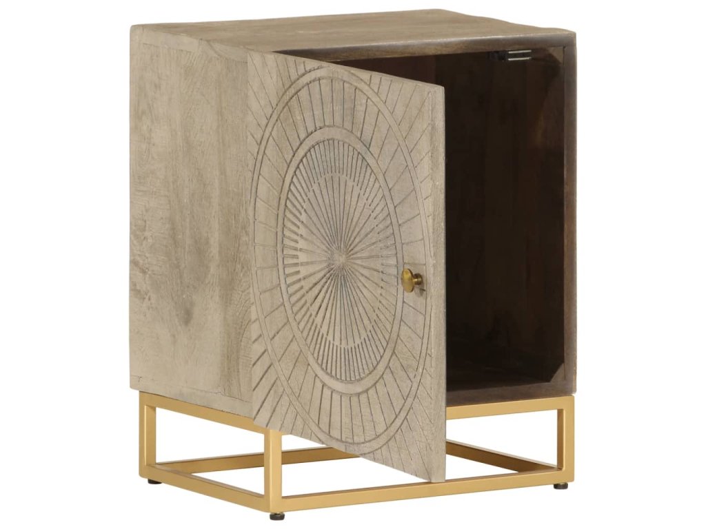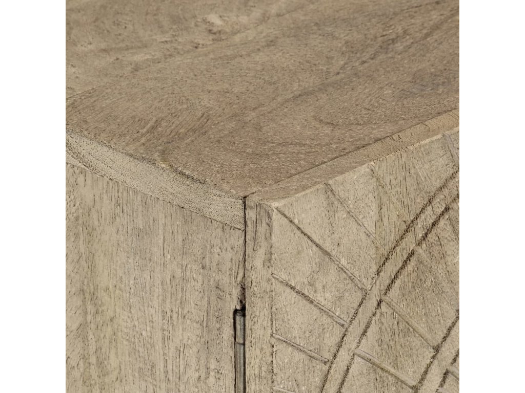 - Masivní mangovníkové dřevo: Masivní mangovníkové dřevo je pevné tropické tvrdé dřevo, ze kterého se vyrábí robustní nábytek. Krásná kresba dřeva propůjčuje každému kusu nábytku jeho jedinečný a od všech ostatních lehce odlišný vzhled. Skříňka je vyrobená z masivního mangovníkového dřeva, je tedy stabilní a odolná.