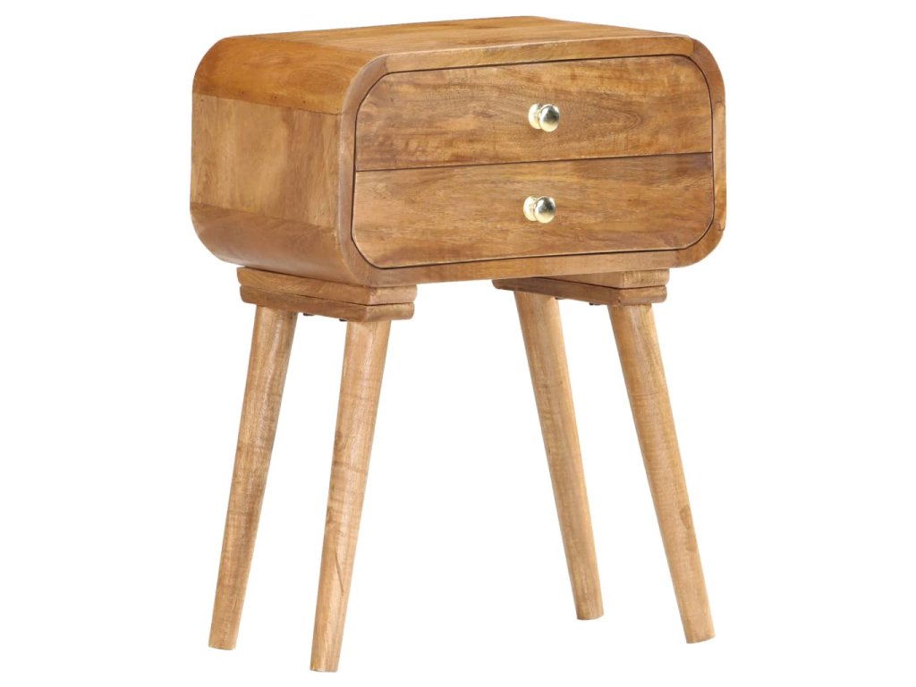 Noční stolek je vyrobený z masivního mangovníkového dřeva, které bylo naleštěné a nalakované, aby vynikl jeho půvabný a rafinovaný vzhled. Mangovník má odolné a robustní tvrdé dřevo s hnědými či zlatými pruhy a liniemi na povrchu. Ve stolku jsou pak 2 zásuvky, do kterých si můžete uspořádat drobnější předměty, abyste je měli neustále po ruce.