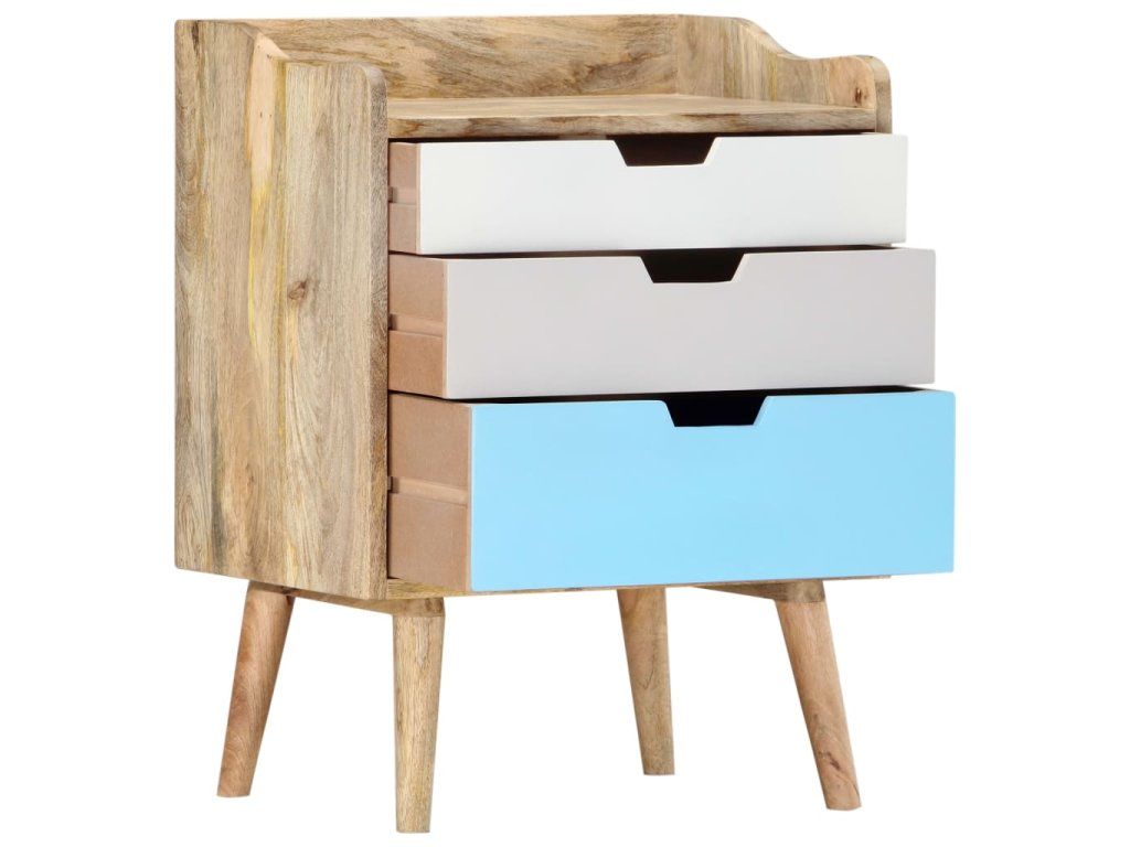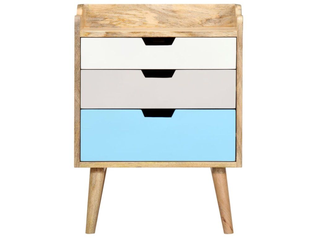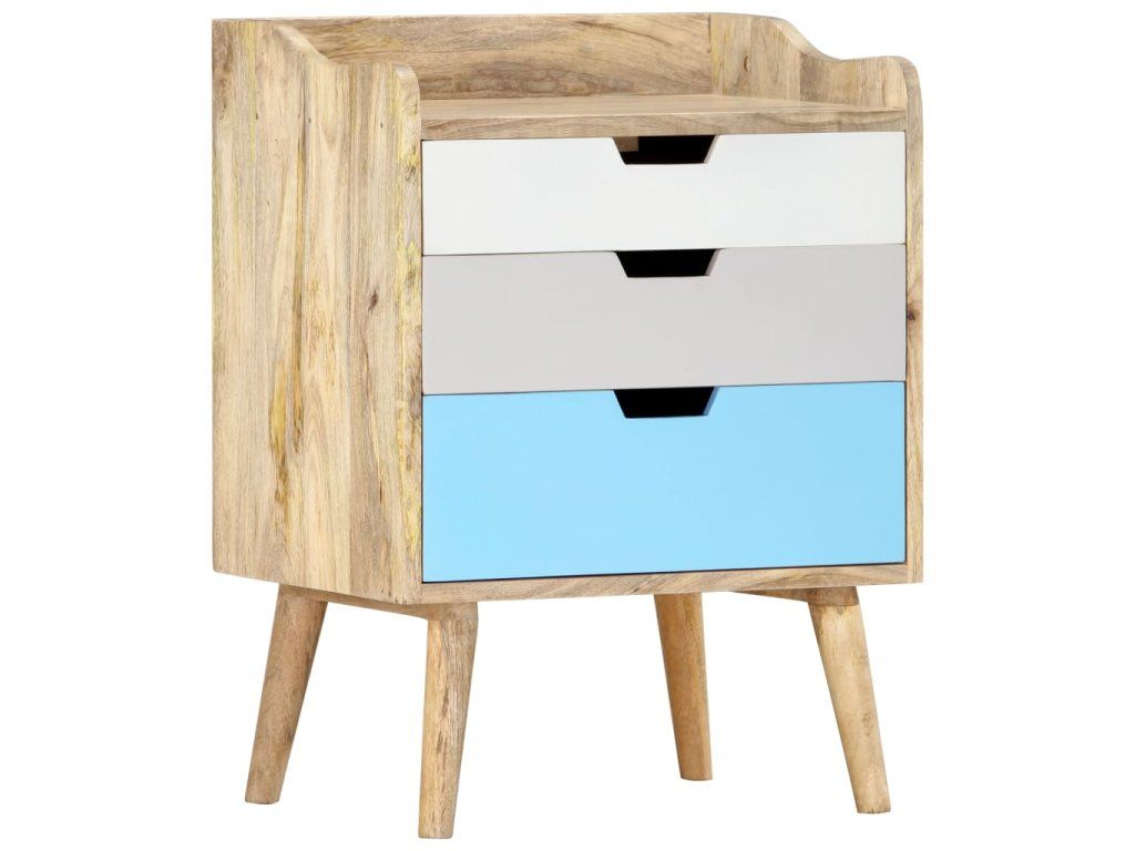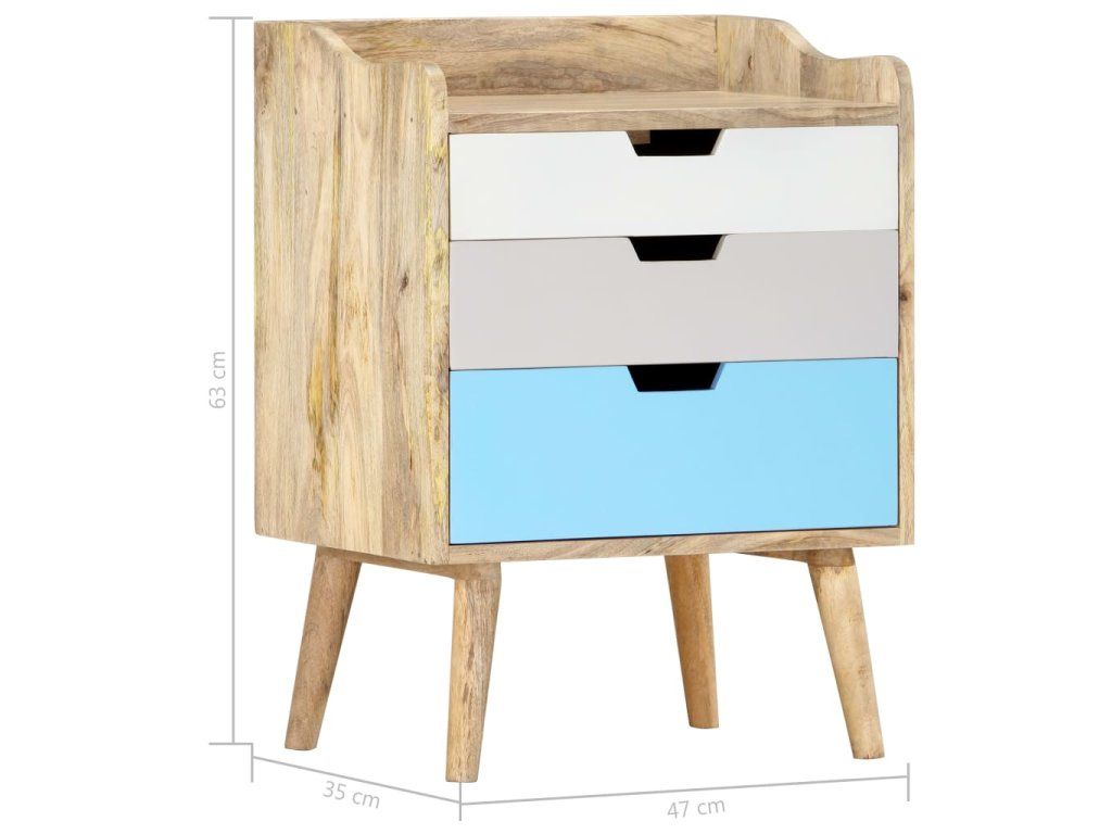 Noční stolek je ručně vyrobený z mangovníkového dřeva, je tudíž nejen pevný, stabilní a odolný, ale zároveň také krásně vypadá. Každá fáze výrobního procesu je prováděna s mimořádnou péčí, ať už se jedná o leštění, natírání anebo lakování. Zručné řemeslné zpracování a nádherná kresba dřeva dávají každému kusu nábytku jedinečný charakter, jímž se lehce liší od všech ostatních. Stolek má pevnou svrchní desku a tři prostorné zásuvky, kam si můžete odkládat knihy, brýle, dálková ovládání a další osobní potřeby, které chcete mít na dosah. Sestavení našeho nočního stolku je snadné.