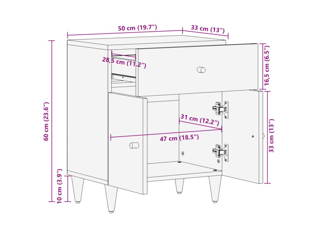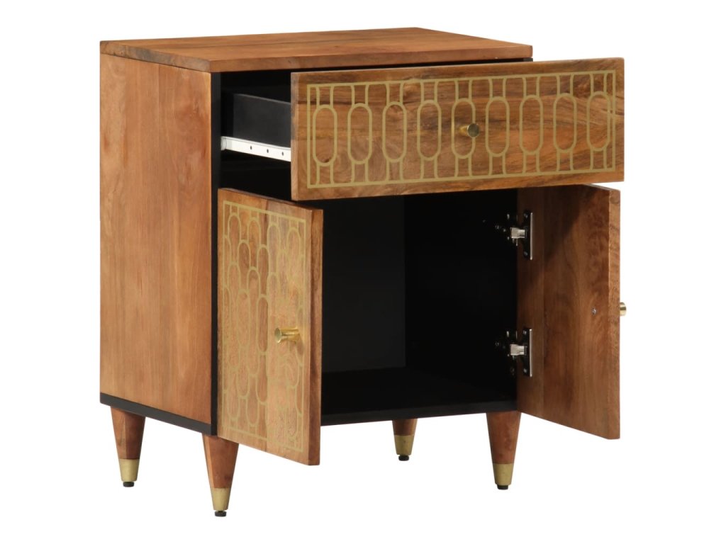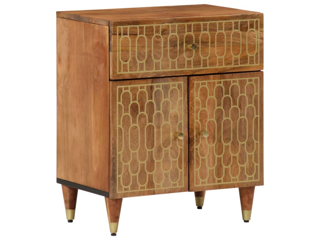 - Masivní mangovníkové dřevo: Masivní mangovníkové dřevo je pevné tropické tvrdé dřevo, ze kterého se vyrábí robustní nábytek. Krásná kresba dřeva propůjčuje každému kusu nábytku jeho jedinečný a od všech ostatních lehce odlišný vzhled. Skříňka je vyrobená z masivního mangovníkového dřeva, je tedy stabilní a odolná.