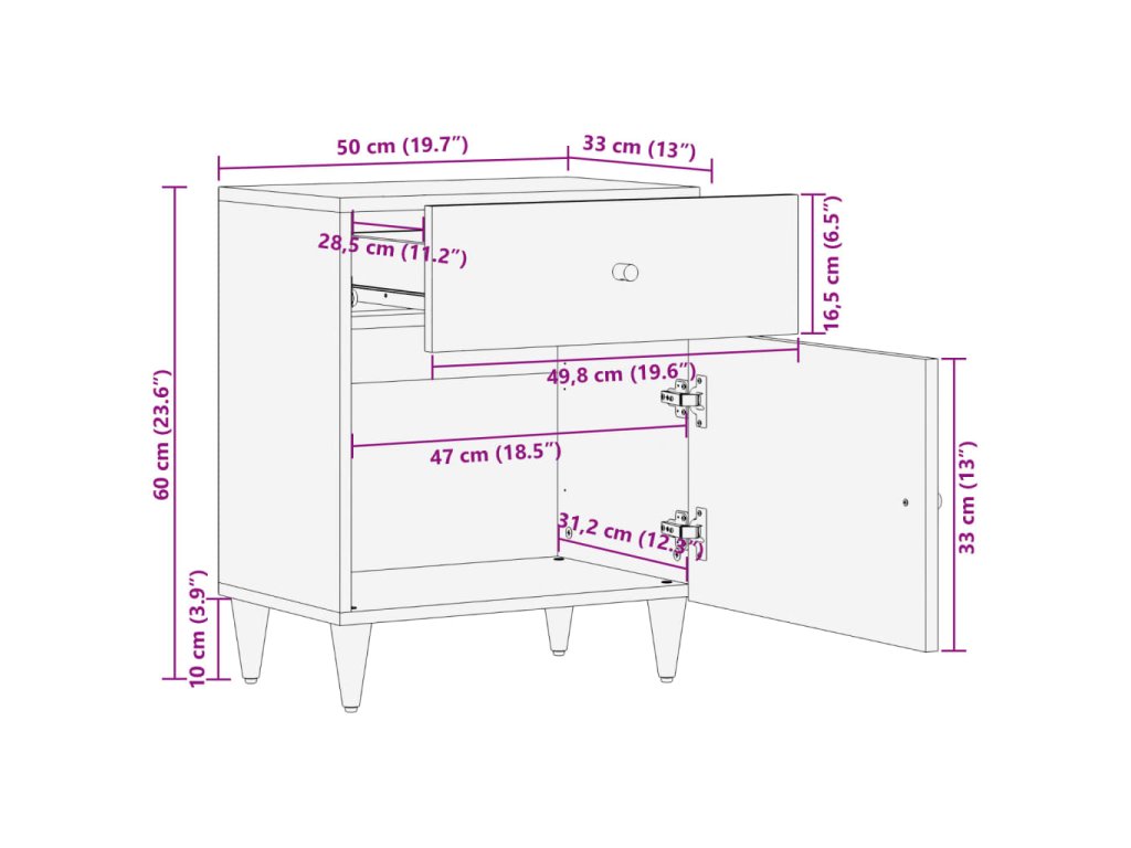 - Masivní mangovníkové dřevo: Masivní mangovníkové dřevo je pevné tropické tvrdé dřevo, ze kterého se vyrábí robustní nábytek. Krásná kresba dřeva propůjčuje každému kusu nábytku jeho jedinečný a od všech ostatních lehce odlišný vzhled. Skříňka je vyrobená z masivního mangovníkového dřeva, je tedy stabilní a odolná.