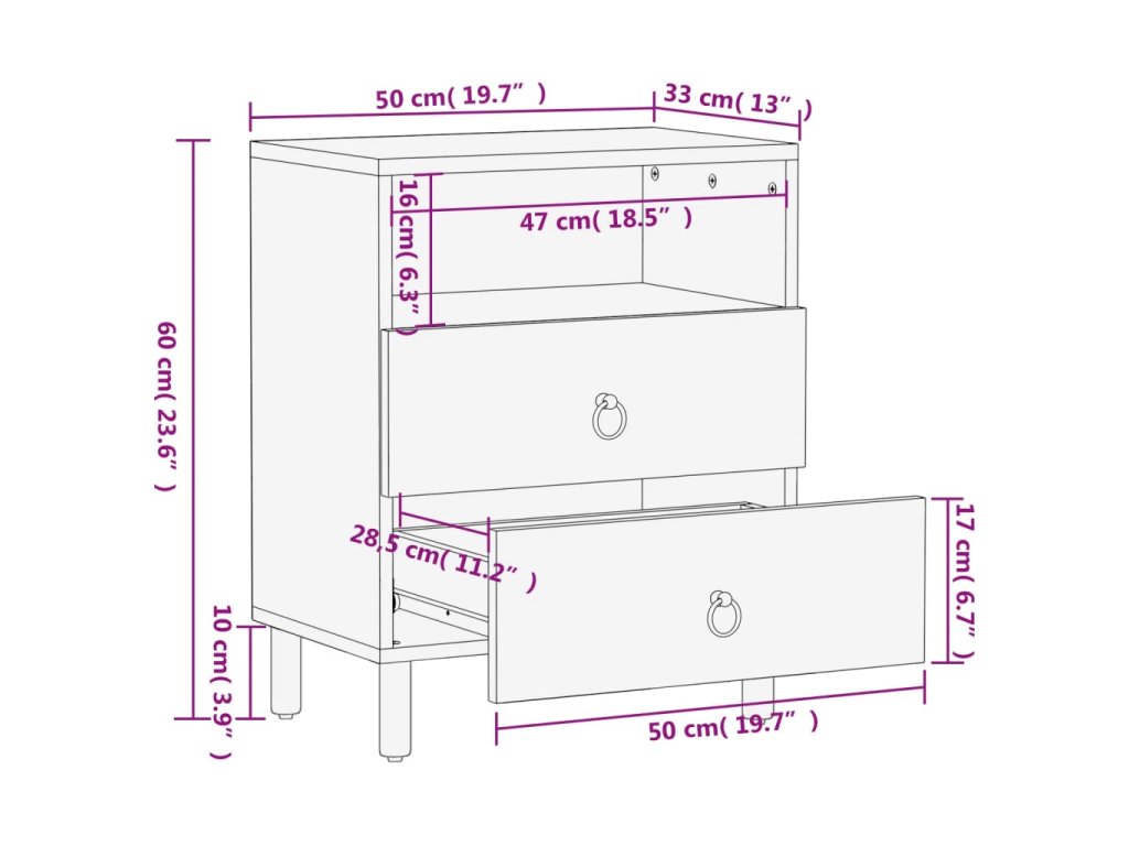 - Dostatek úložného prostoru: Noční stolek je navržen se 2 zásuvkami a 1 přihrádkou, kde budete mít vaše věci uspořádané a neustále po ruce.