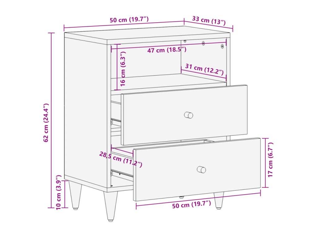 - Dostatek úložného prostoru: Noční stolek je navržen se 2 zásuvkami a 1 přihrádkou, kde budete mít vaše věci uspořádané a neustále po ruce.
