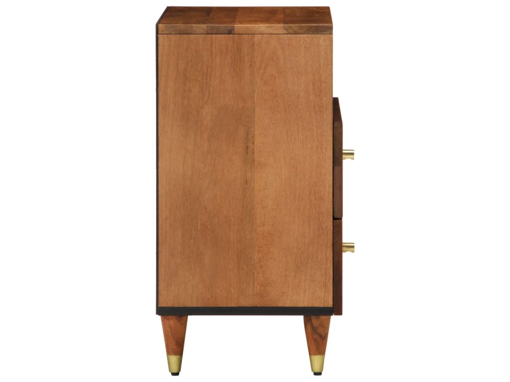 - Masivní mangovníkové dřevo: Masivní mangovníkové dřevo je pevné tropické tvrdé dřevo, ze kterého se vyrábí robustní nábytek. Krásná kresba dřeva propůjčuje každému kusu nábytku jeho jedinečný a od všech ostatních lehce odlišný vzhled. Skříňka je vyrobená z masivního mangovníkového dřeva, je tedy stabilní a odolná.