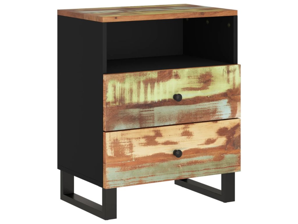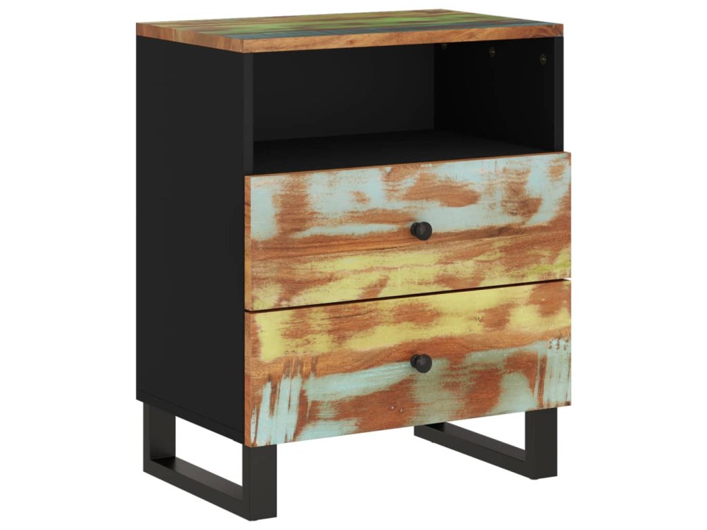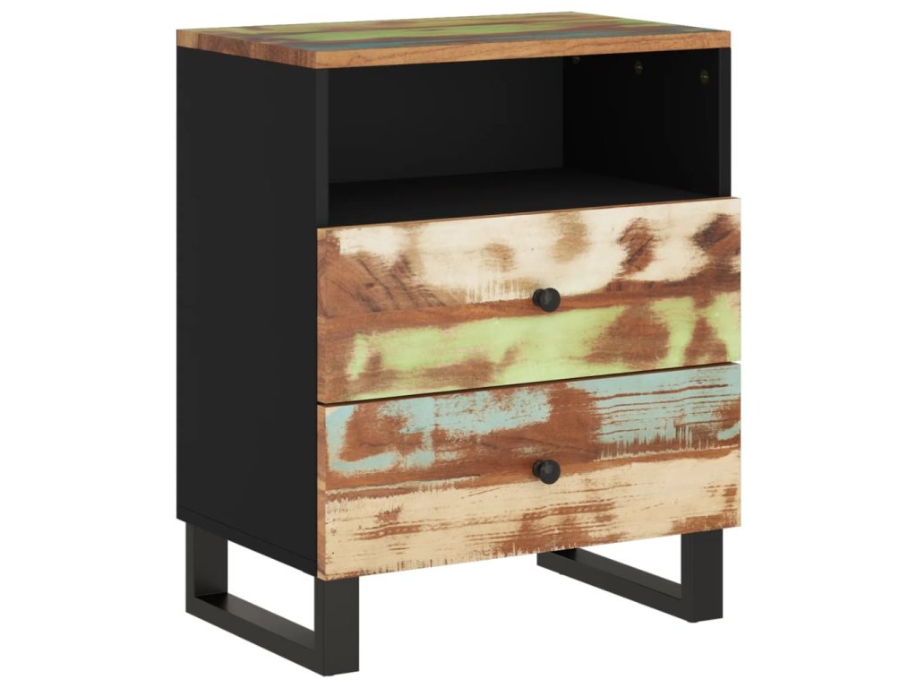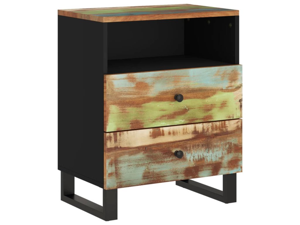 - Masivní recyklované dřevo: Masivní recyklované dřevo se skládá z opakovaně použitých dřevin, jako je teak, mangovník, borovice a buk. Toto dřevo pochází ze starých staveb, jako jsou továrny, kůlny a lodě. Jedná se o fantastický materiál pro výrobu nábytku, protože je šetrný k životnímu prostředí. Jelikož je každý kus ručně vyrobený a jedinečný, odstíny se mohou u každého z nich lišit. Můžete narazit na odstíny modré, zelené, někdy také oranžové, červené a růžové.
