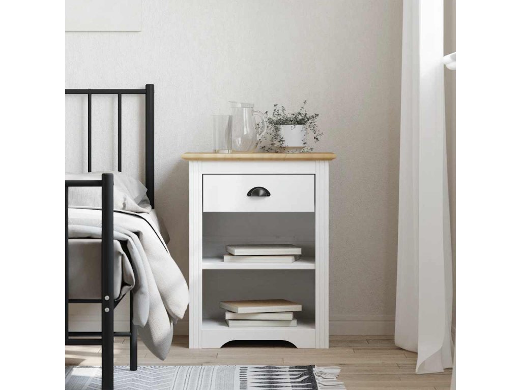 - Kovová úchytka: Kovová úchytka tohoto odkládacího stolku usnadňuje otevírání a zavírání zásuvky a zároveň činí noční stolek více atraktivní.