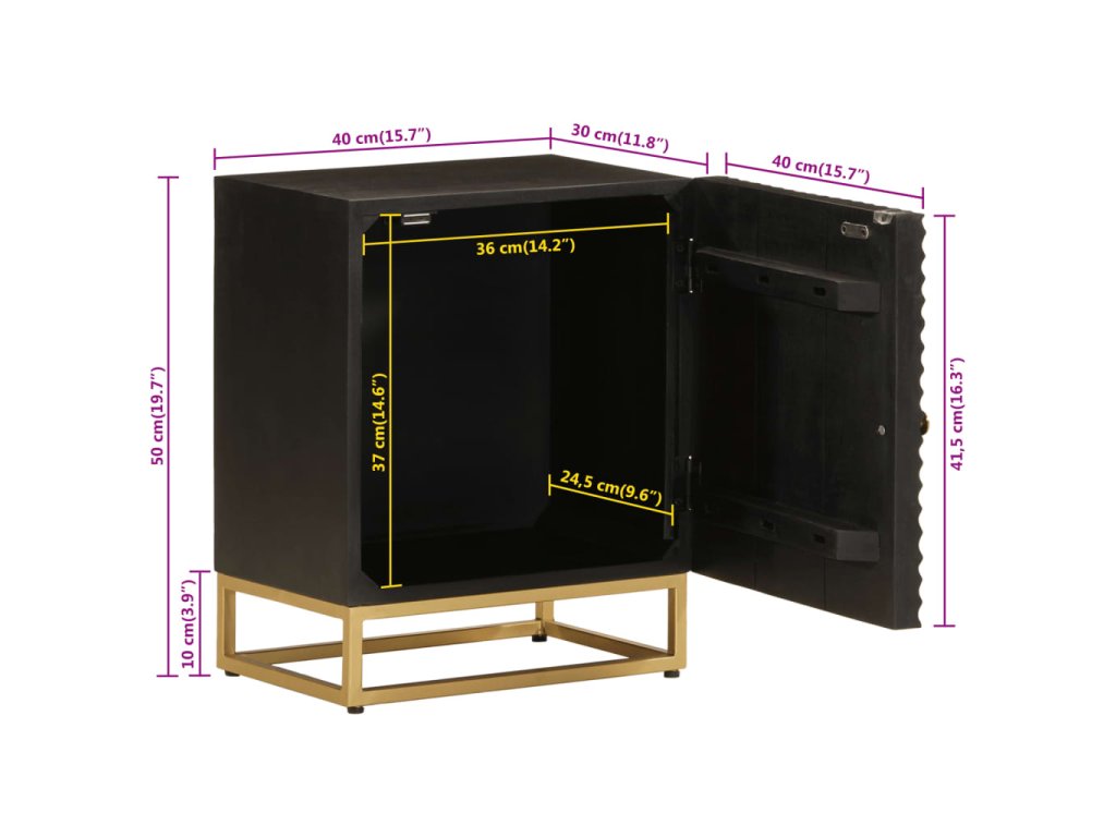- Masivní mangovníkové dřevo: Masivní mangovníkové dřevo je pevné tropické tvrdé dřevo, ze kterého se vyrábí robustní nábytek. Krásná kresba dřeva propůjčuje každému kusu nábytku jeho jedinečný a od všech ostatních lehce odlišný vzhled. Skříňka je vyrobená z masivního mangovníkového dřeva, je tedy stabilní a odolná.