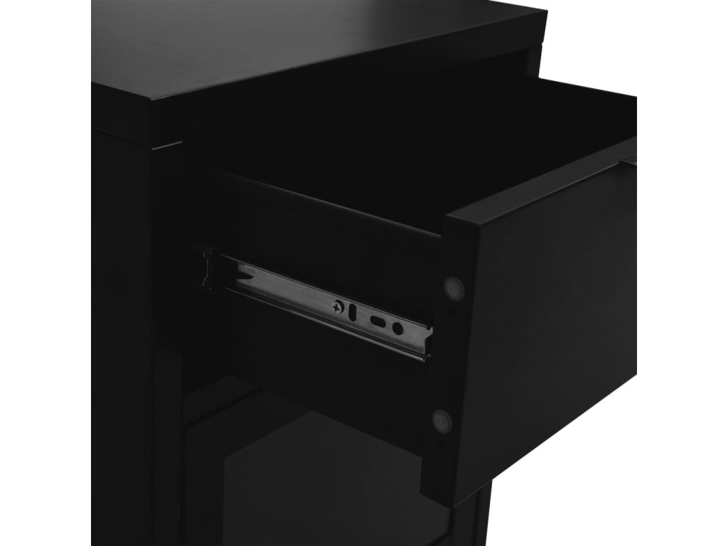 Noční stolek je vyroben z oceli a tvrzeného skla, takže je odolný a snadno se čistí. Skříňka má 1 zásuvku, která poskytuje dostatek úložného prostoru pro přehledné uspořádání knih a dalších drobností, které chcete mít po ruce. Zásuvka s třídílnými pojezdy s kuličkovými ložisky zajišťuje hladké otevírání a zavírání.