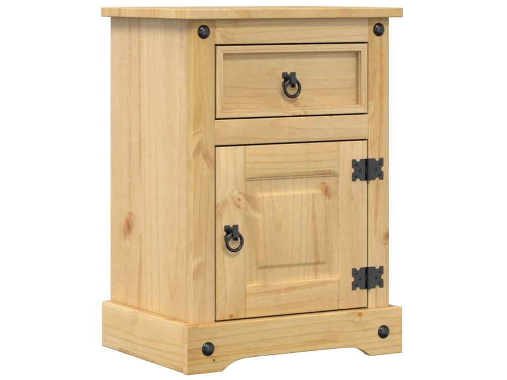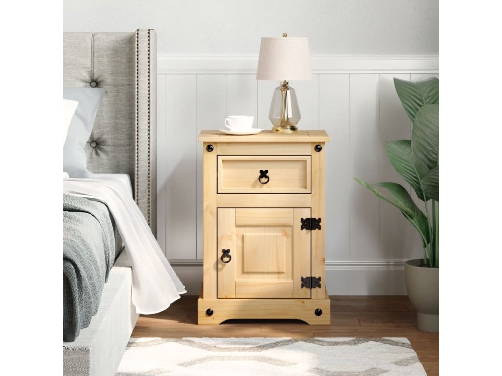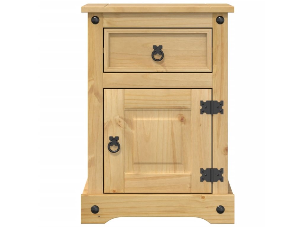 - Masivní borové dřevo: Masivní borové dřevo je krásný přírodní materiál. Borové dřevo má rovnou kresbu a obsahuje suky, které materiálu dodávají jeho charakteristický, rustikální vzhled. Noční stolek je vyroben z masivního borového dřeva a je odolný a robustní.
