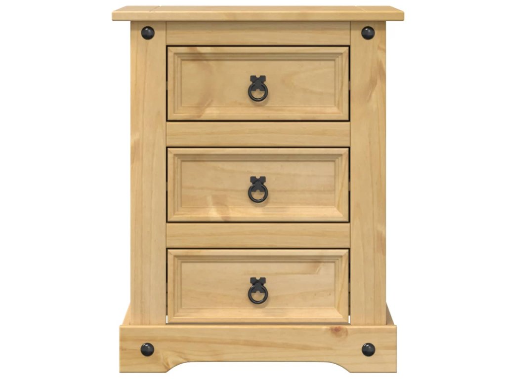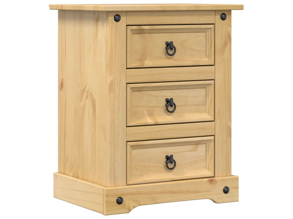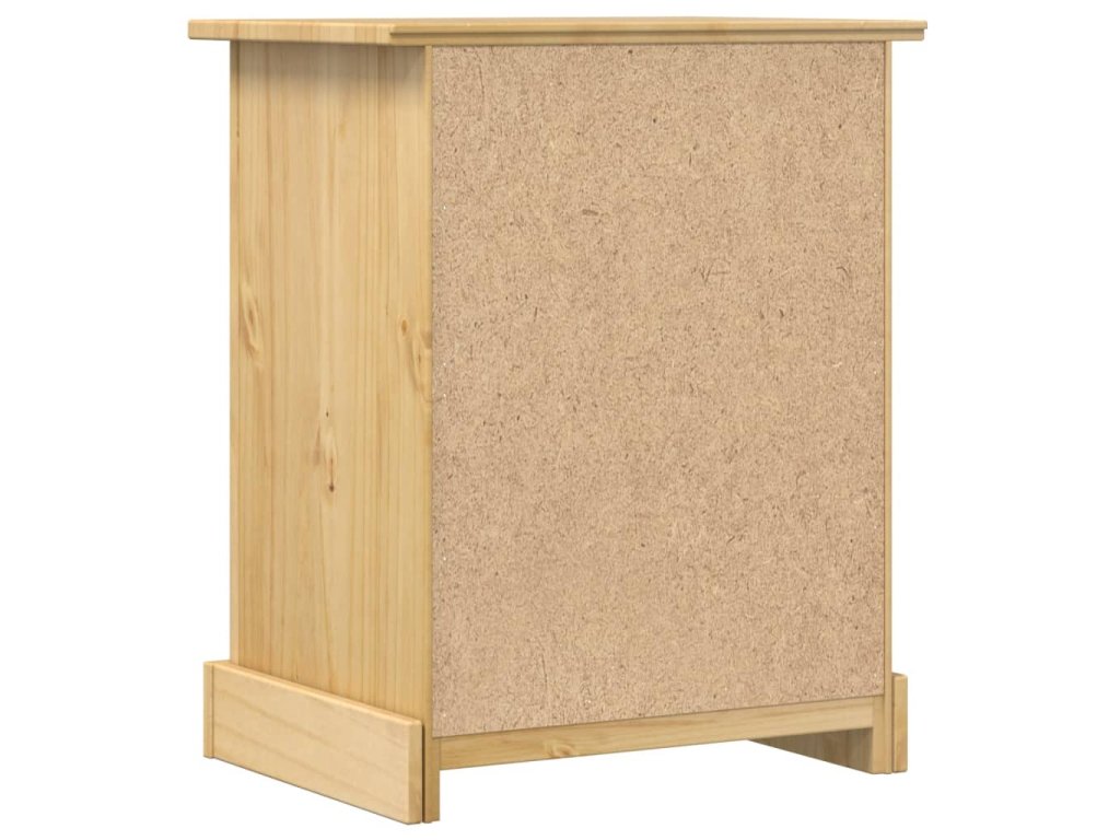 - Masivní borové dřevo: Masivní borové dřevo je krásný přírodní materiál. Borové dřevo má rovnou kresbu a obsahuje suky, které materiálu dodávají jeho charakteristický, rustikální vzhled. Noční stolek je vyroben z masivního borového dřeva a je odolný a robustní.