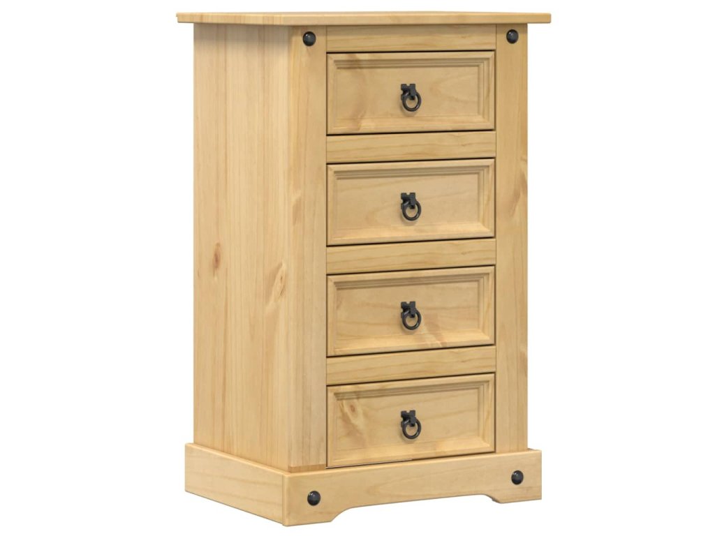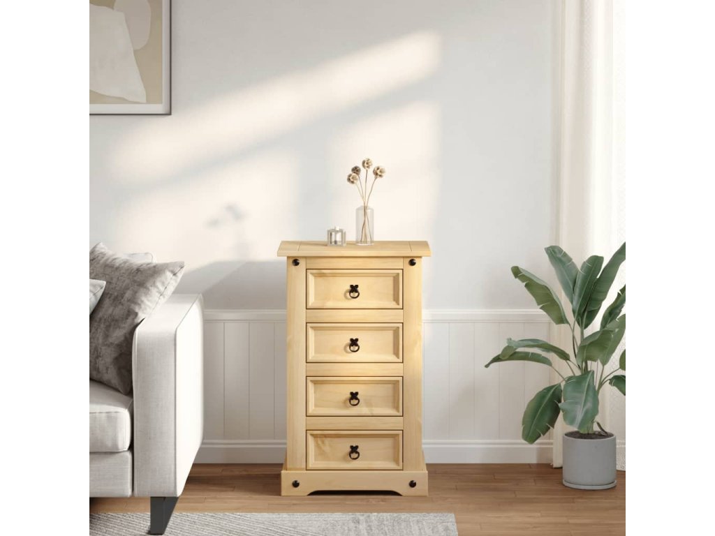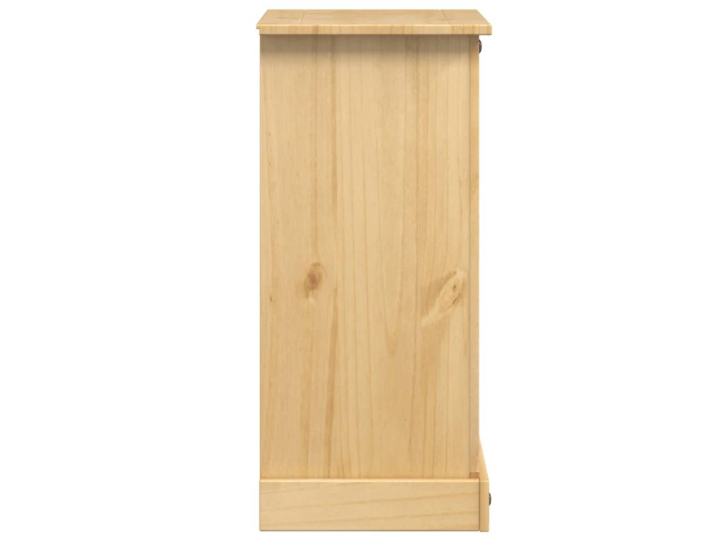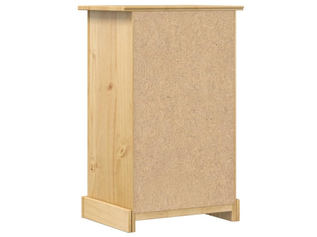 - Masivní borové dřevo: Masivní borové dřevo je krásný přírodní materiál. Borové dřevo má rovnou kresbu a obsahuje suky, které materiálu dodávají jeho charakteristický, rustikální vzhled. Noční stolek je vyroben z masivního borového dřeva a je odolný a robustní.