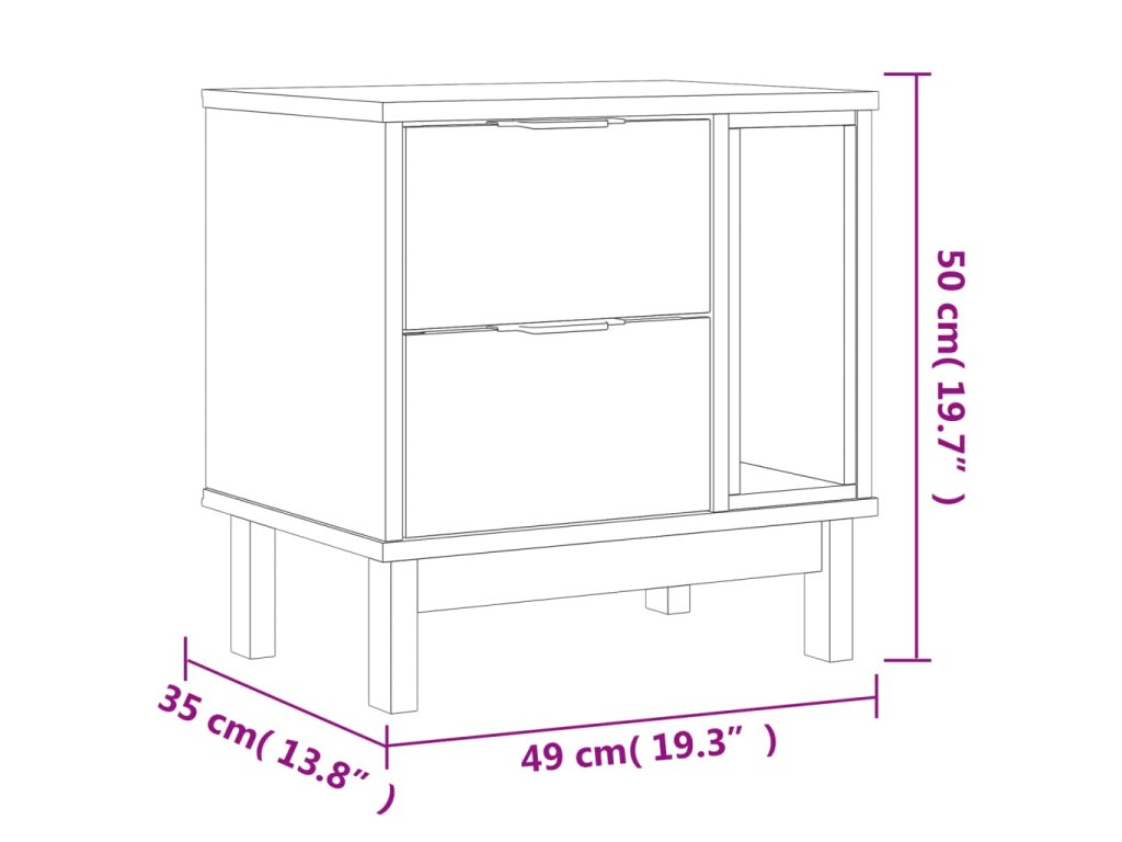 - Masivní borové dřevo: Masivní borové dřevo je krásný přírodní materiál. Borové dřevo má rovnou kresbu a obsahuje suky, které materiálu dodávají jeho charakteristický, rustikální vzhled. Noční stolek je vyroben z masivního borového dřeva a je odolný a robustní.