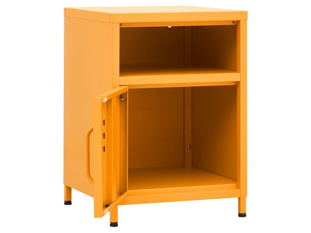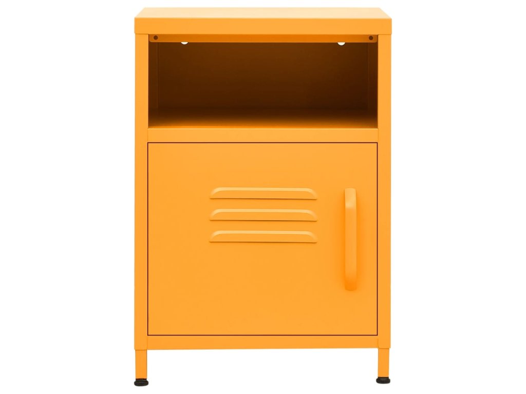 Noční stolek je vyrobený z oceli, takže je odolný a snadno se čistí. Najdete v něm 1 otevřenou přihrádku a 1 přihrádku s dvířky, které vám poskytnou spoustu místa k přehlednému uložení vašich DVD, multimediálních zařízení, knížek a dalších důležitých maličkostí tak, abyste je měli na dosah ruky. Nivelační nohy ve spodní části umožňují nastavit výšku podle vašich potřeb.