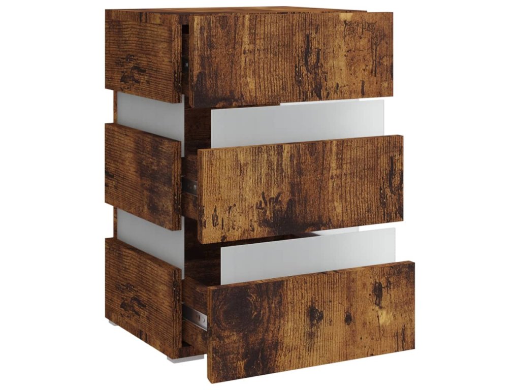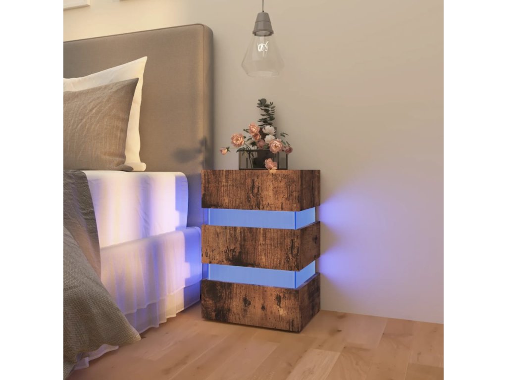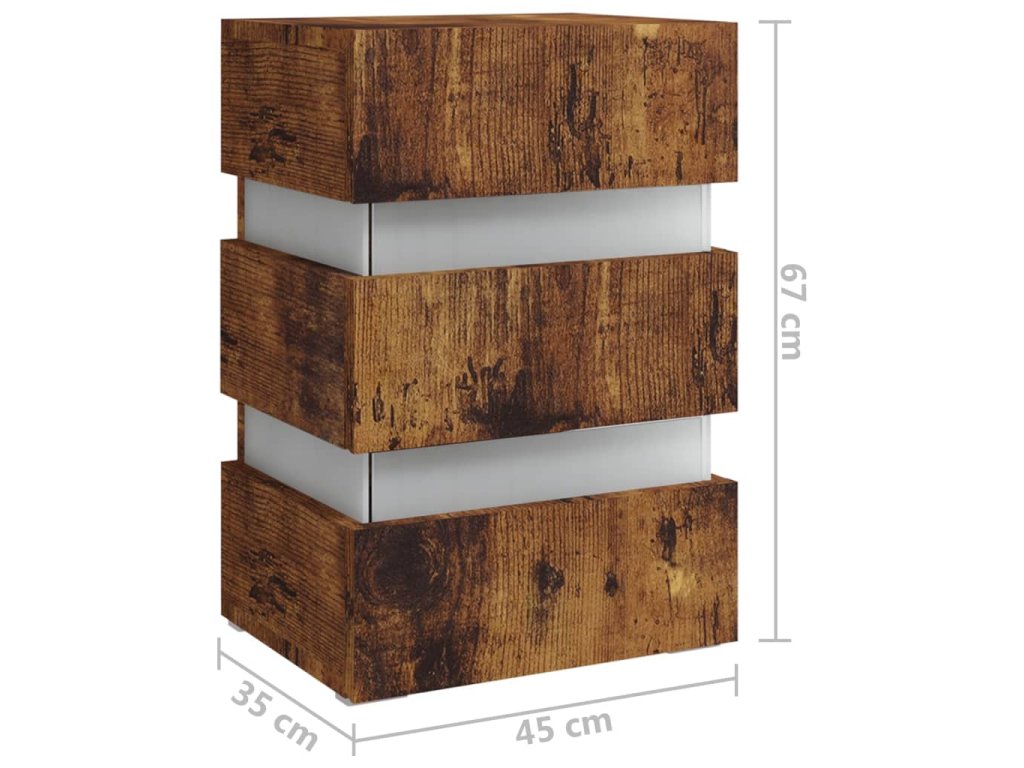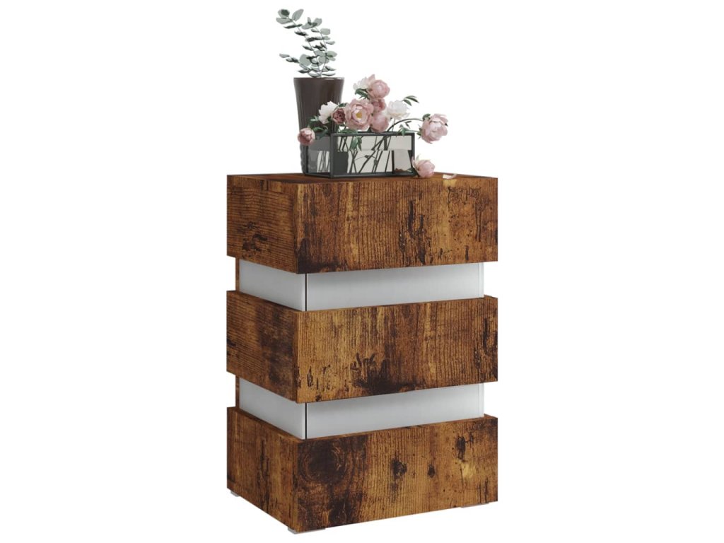 Noční stolek vyrobený z kvalitního kompozitního dřeva je stabilní a snadno se čistí vlhkým hadříkem. Poskytuje dostatek úložného prostoru pro ukládání časopisů, knih, dálkových ovladačů a dalších drobností, které budete mít přehledně uspořádané a po ruce. Stolek je navíc vybaven LED světly, které pokoji dodají moderní šmrnc. Tento noční stolek má vše, co hledáte!