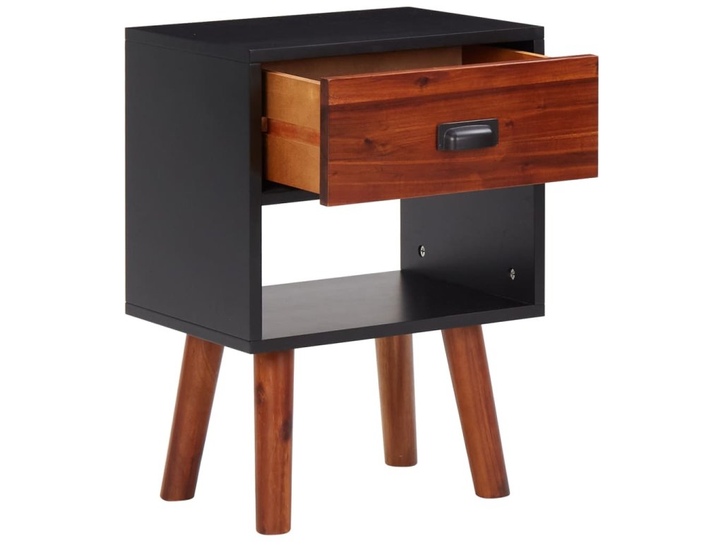 Tyto noční stolky, zručně zhotovené z masivního akáciového dřeva a vysoce kvalitního MDF, jsou velmi robustní a odolné. Kompaktní stolky mají hladce se vysouvající zásuvku, do které si můžete přehledně uspořádat drobné předměty, které chcete mít po ruce. Polička pod zásuvkou poskytuje další úložný prostor.