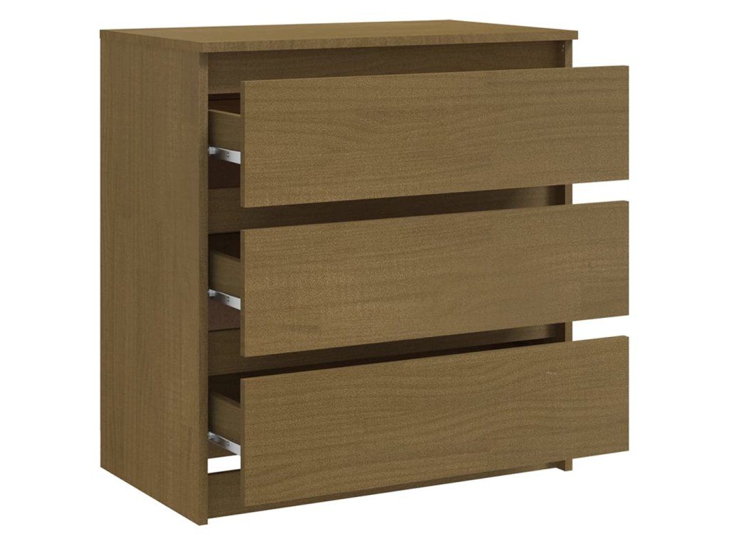 Noční stolek se vyznačuje robustní konstrukcí, je tedy velmi odolný. Je navíc vybavený třemi zásuvkami, které poskytují dostatek úložného prostoru pro vaše věci, abyste je měli přehledně uspořádané a na dosah. Snadno se také čistí vlhkým hadříkem.