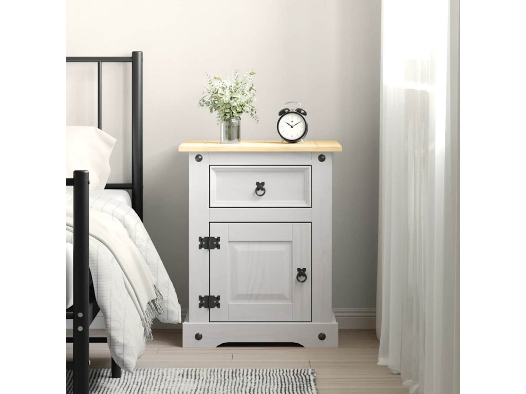 Tento noční stolek z masivního borového dřeva je pevný a robustní. Je v něm zásuvka pro menší předměty, které chcete mít po ruce, a přihrádka s dvířky, která je ideální pro ukládání knih a časopisů. Horní deska skříňky je bytelná a dostatečně velká pro noční lampičku, budík nebo cokoliv, co potřebujete mít po ruce vedle postele.