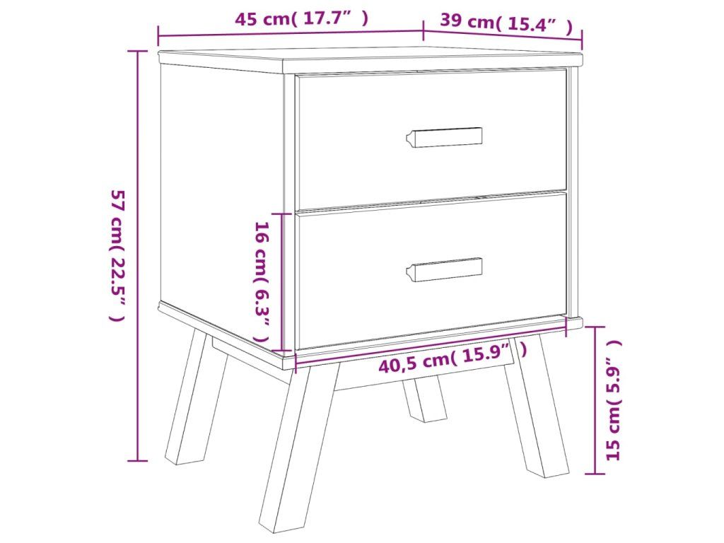 - Masivní borové dřevo: Masivní borové dřevo je krásný přírodní materiál. Borové dřevo má rovnou kresbu a obsahuje suky, které materiálu dodávají jeho charakteristický, rustikální vzhled. Noční stolek je vyroben z masivního borového dřeva, je tedy robustní a stabilní.