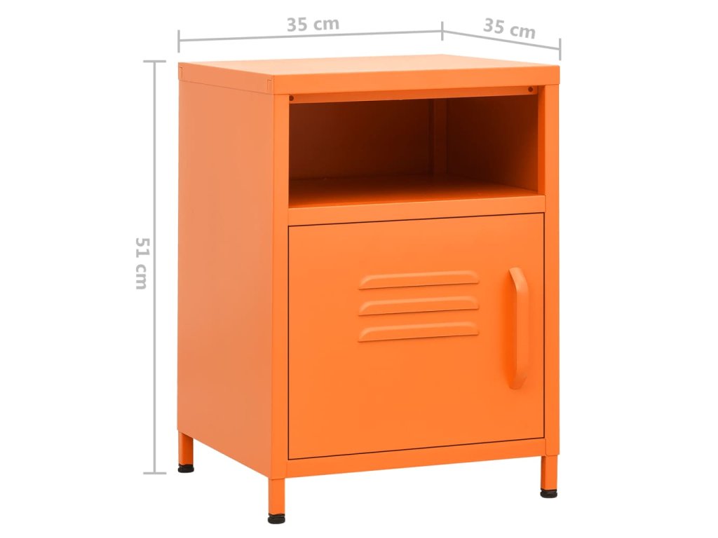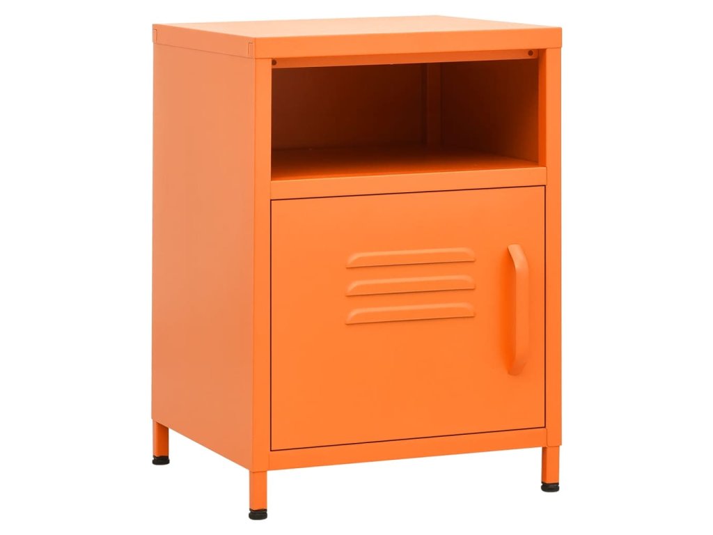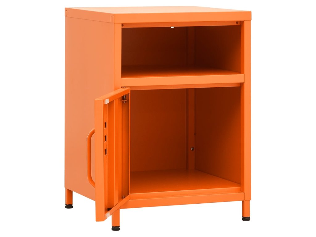 Noční stolek je vyrobený z oceli, takže je odolný a snadno se čistí. Najdete v něm 1 otevřenou přihrádku a 1 přihrádku s dvířky, které vám poskytnou spoustu místa k přehlednému uložení vašich DVD, multimediálních zařízení, knížek a dalších důležitých maličkostí tak, abyste je měli na dosah ruky. Nivelační nohy ve spodní části umožňují nastavit výšku podle vašich potřeb.