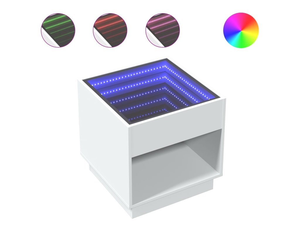 Tento noční stolek s infinity LED zrcadlem se stane nadčasovým doplňkem vašeho interiéru.