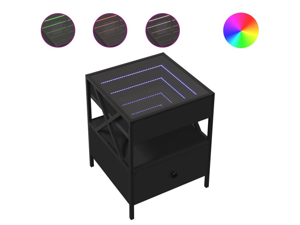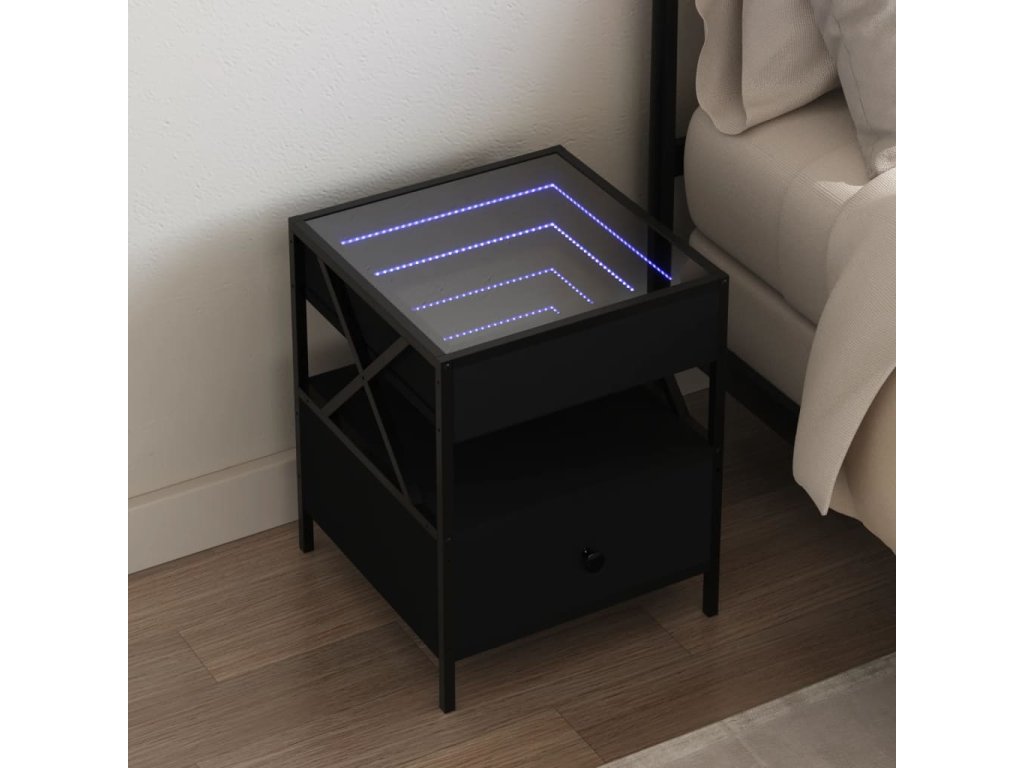 Tento noční stolek s infinity LED zrcadlem se stane nadčasovým doplňkem vašeho interiéru.