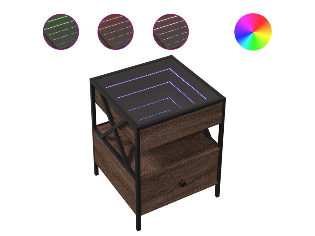 Tento noční stolek s infinity LED zrcadlem se stane nadčasovým doplňkem vašeho interiéru.