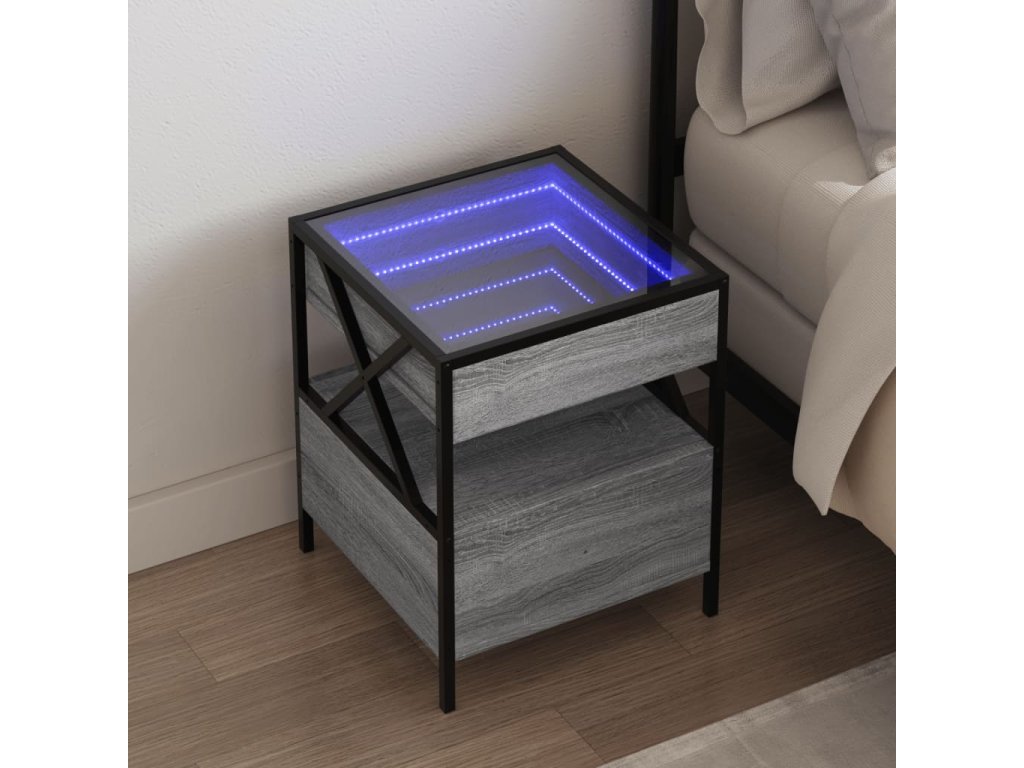 Tento noční stolek s infinity LED zrcadlem se stane nadčasovým doplňkem vašeho interiéru.