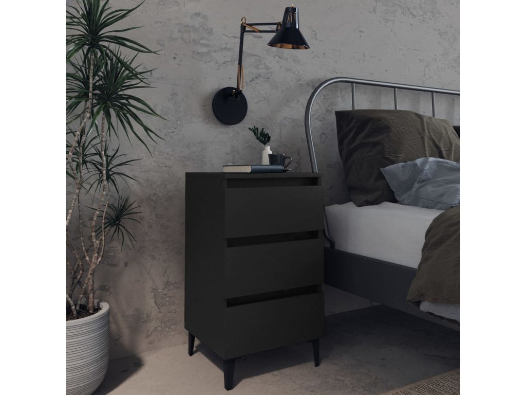 Tento noční stolek se čtyřmi kovovými nohami je velmi stabilní a bytelný. Je navíc vybavený třemi zásuvkami, které nabízejí dostatek úložného prostoru pro přehledné uspořádání vašich věcí, které budete mít po ruce. Snadno se také čistí vlhkým hadříkem.