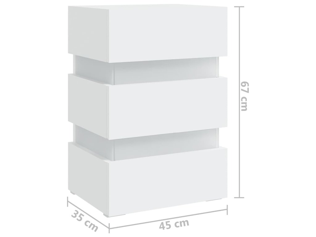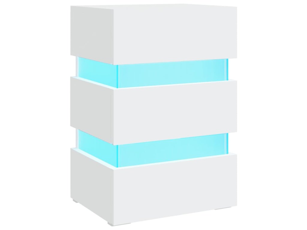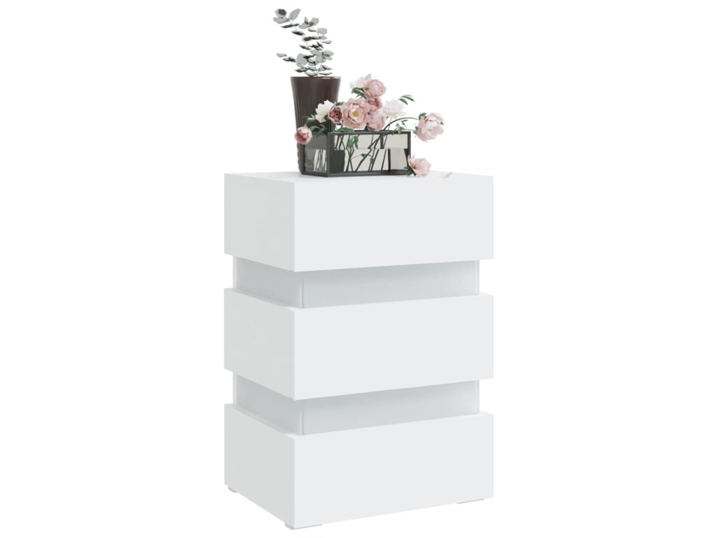 Noční stolek vyrobený z kvalitního kompozitního dřeva je stabilní a snadno se čistí vlhkým hadříkem. Poskytuje dostatek úložného prostoru pro ukládání časopisů, knih, dálkových ovladačů a dalších drobností, které budete mít přehledně uspořádané a po ruce. Stolek je navíc vybaven LED světly, které pokoji dodají moderní šmrnc. Tento noční stolek má vše, co hledáte!