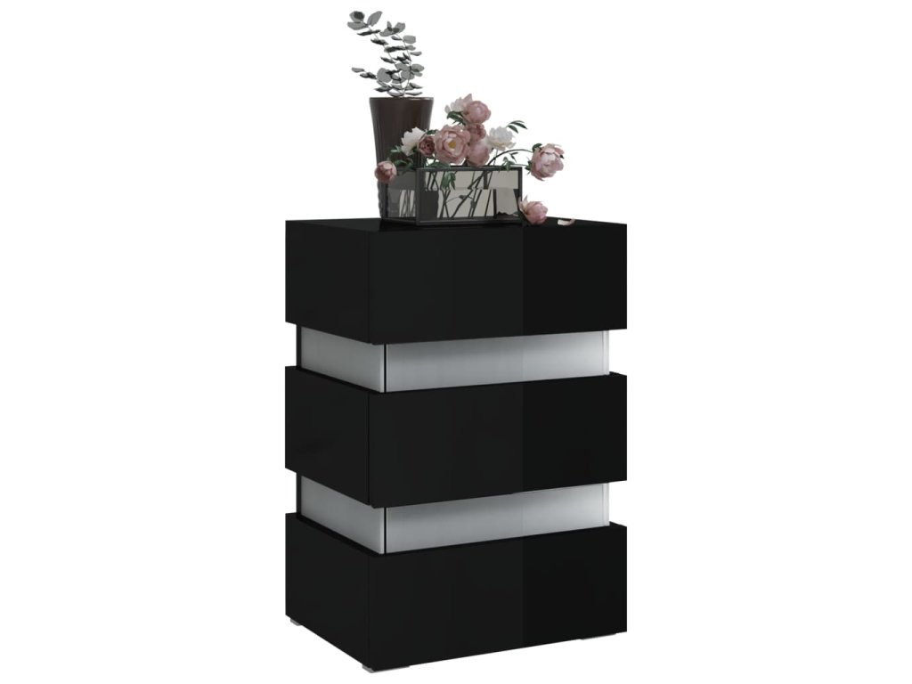 Noční stolek vyrobený z kvalitního kompozitního dřeva je stabilní a snadno se čistí vlhkým hadříkem. Poskytuje dostatek úložného prostoru pro ukládání časopisů, knih, dálkových ovladačů a dalších drobností, které budete mít přehledně uspořádané a po ruce. Stolek je navíc vybaven LED světly, které pokoji dodají moderní šmrnc. Tento noční stolek má vše, co hledáte!