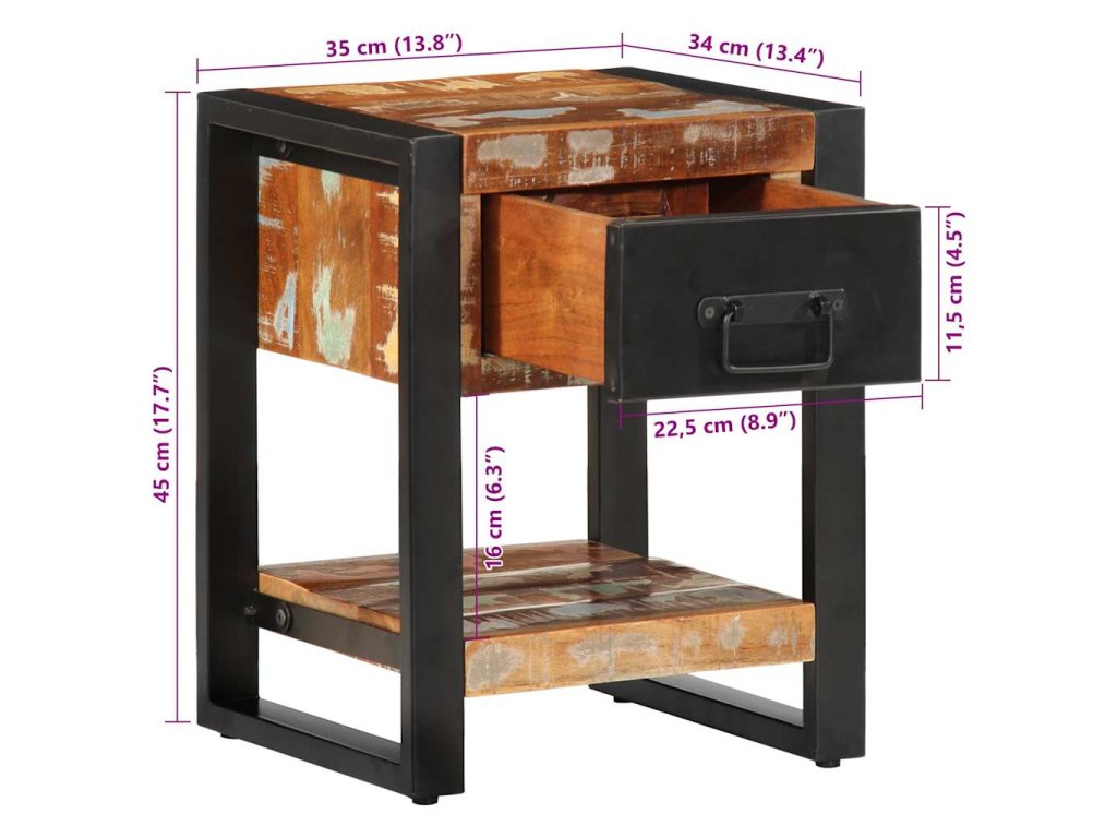 - Materiál: masivní recyklované dřevo, železo