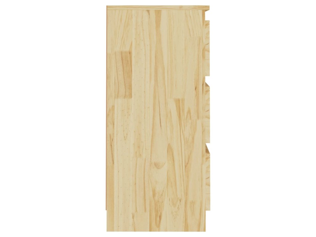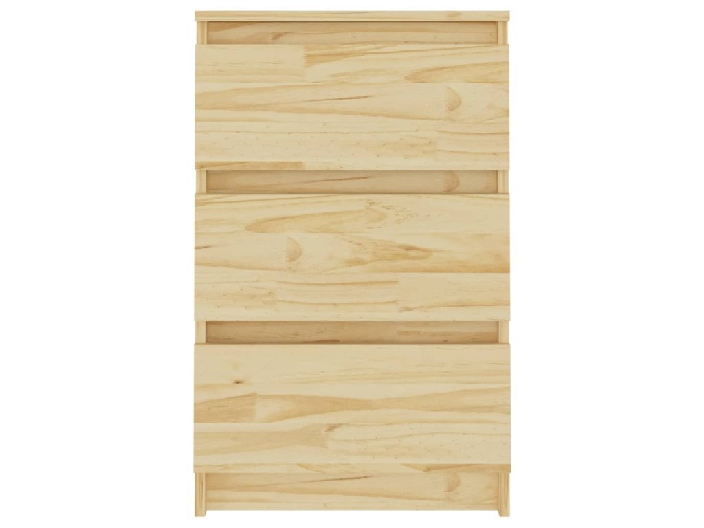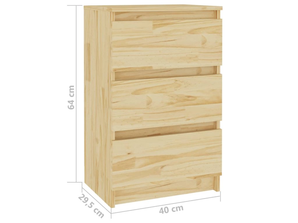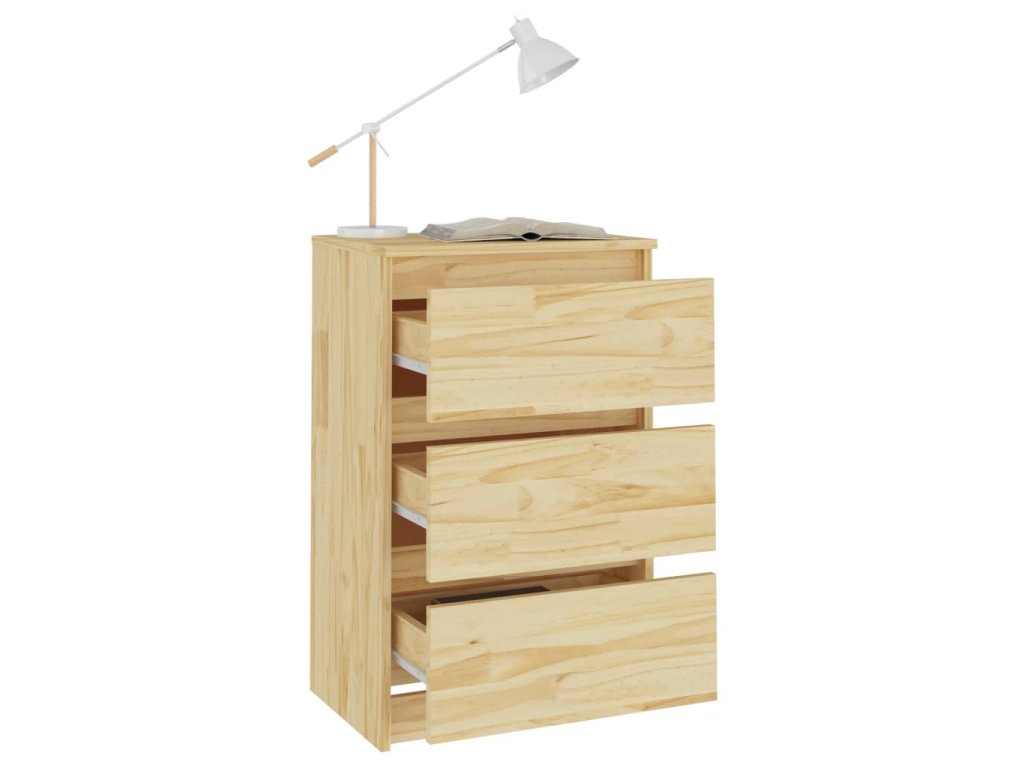 Noční stolek je vyrobený z masivního borového dřeva, které mu zajišťuje pevnost, odolnost a dlouhou životnost. Tři zásuvky poskytují dostatek úložného prostoru, abyste si mohli přehledně uspořádat drobné předměty a mít je na dosah. Tento noční stolek se navíc snadno čistí pomocí vlhkého hadříku.