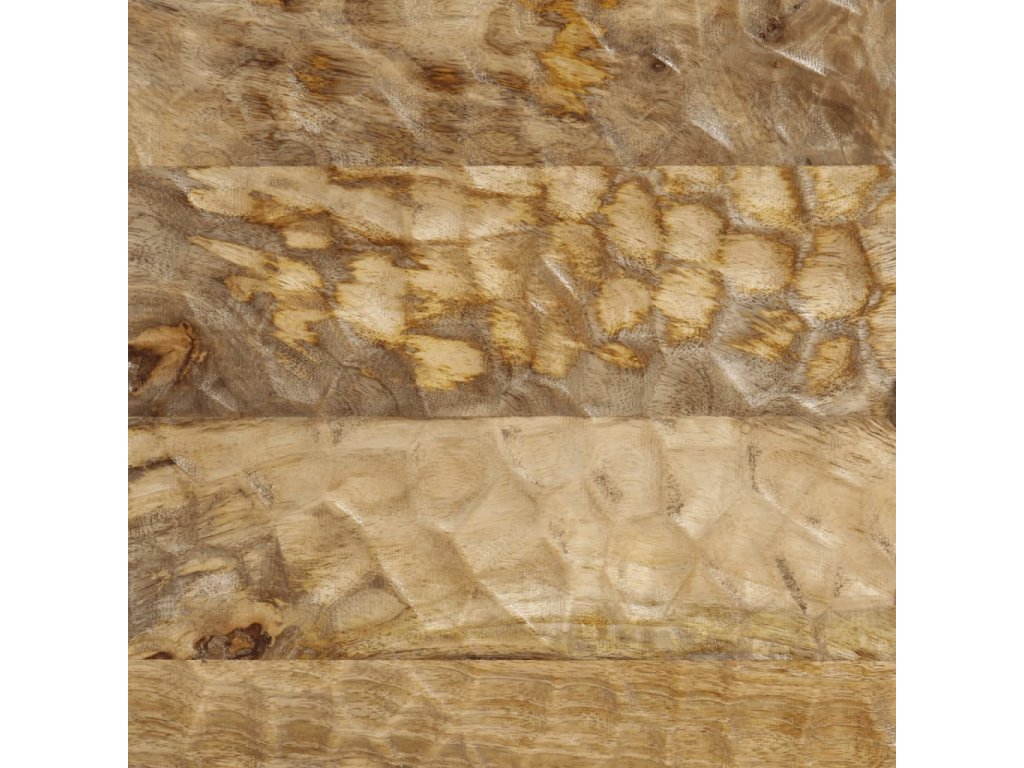 - Masivní mangovníkové dřevo: Masivní mangovníkové dřevo je pevné tropické tvrdé dřevo, ze kterého se vyrábí robustní nábytek. Krásná kresba dřeva propůjčuje každému kusu nábytku jeho jedinečný a od všech ostatních lehce odlišný vzhled. Skříňka je vyrobená z masivního mangovníkového dřeva, je tedy stabilní a odolná.
