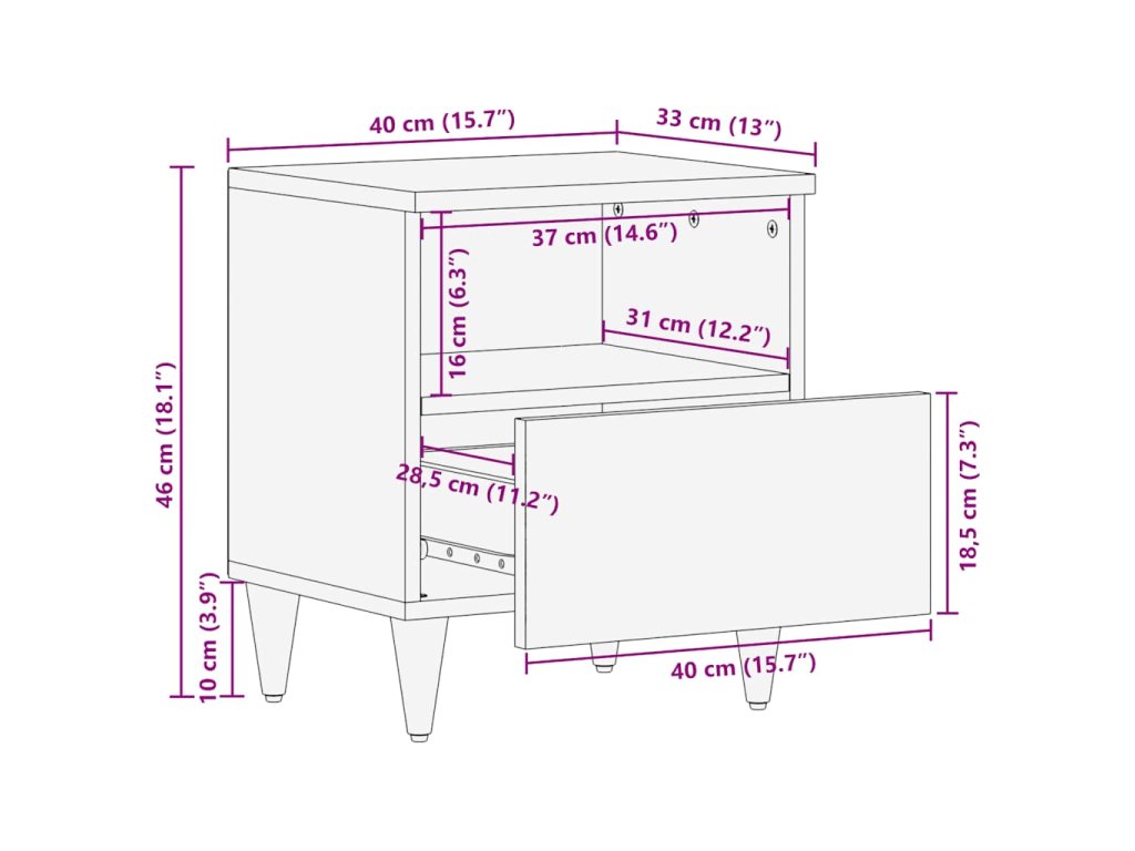 - Všestranné použití: Tento noční stolek je vhodný nejen do ložnice, ale lze jej použít i jako odkládací stolek v obývacím pokoji nebo jako další úložný prostor v jakékoli místnosti.