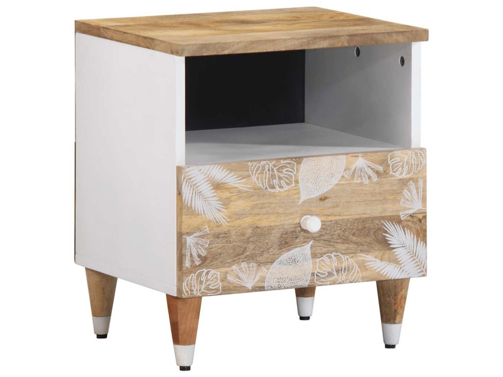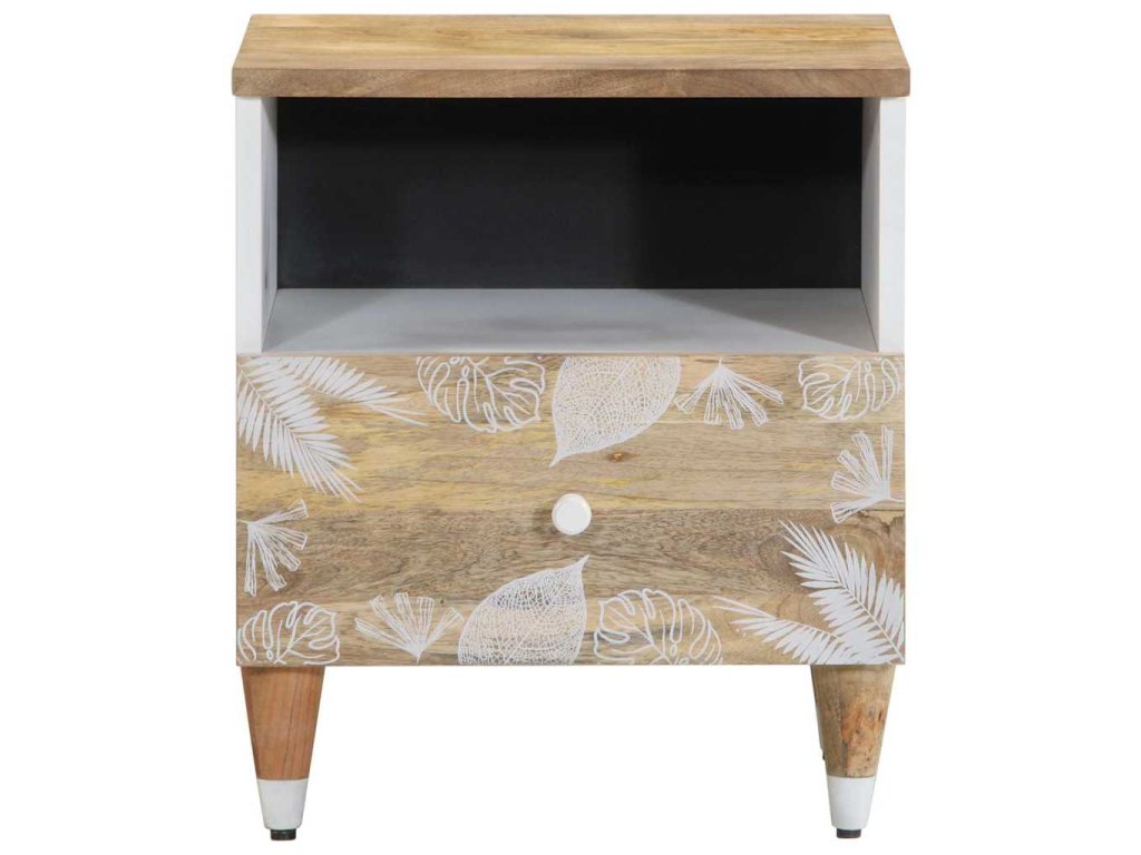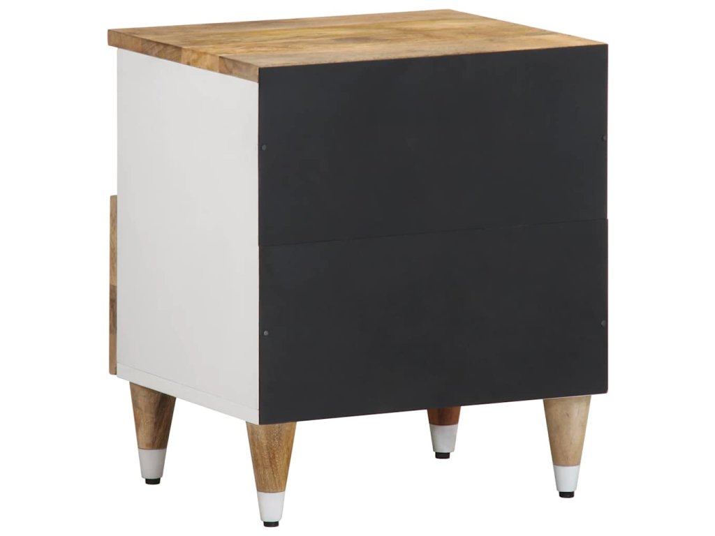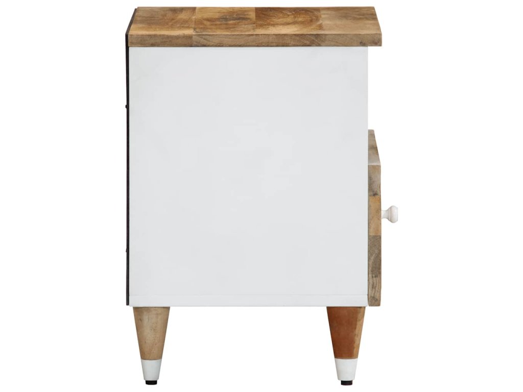 - Materiál: Přírodní mango s bílým lakem, kompozitní dřevo, kov