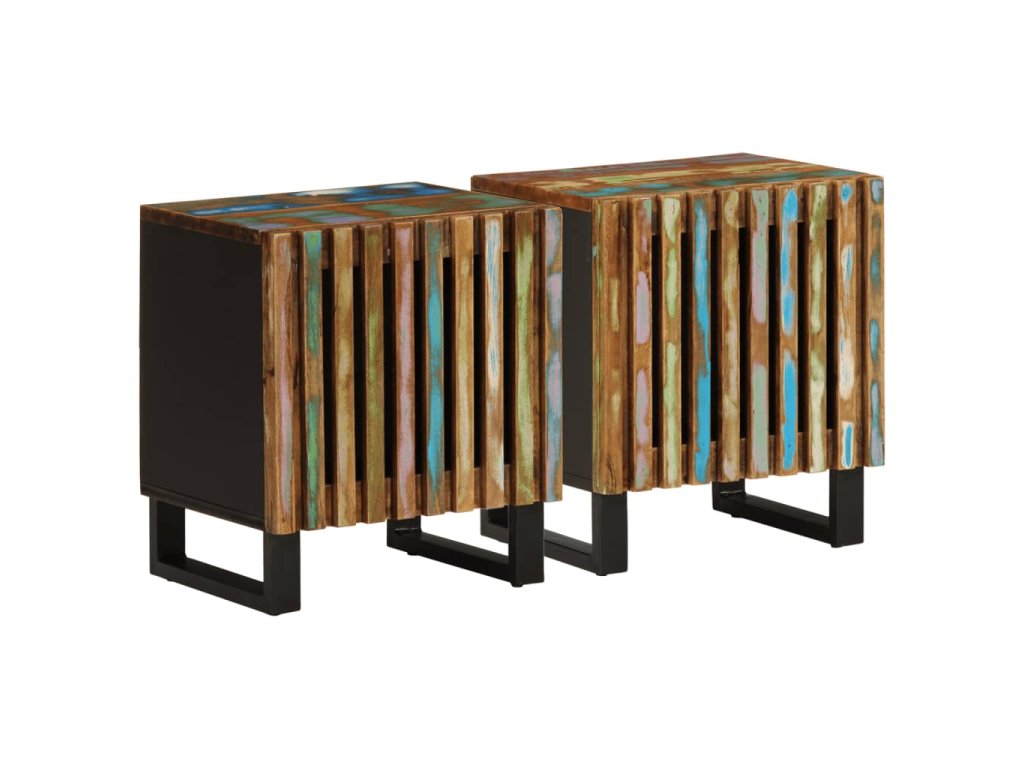 - Masivní recyklované dřevo: Masivní recyklované dřevo se skládá z opakovaně použitých dřevin, jako je teak, mangovník, borovice a buk. Toto dřevo pochází ze starých staveb, jako jsou továrny, kůlny a lodě. Jelikož je každý kus ručně vyrobený, odstíny se mohou u každého z nich lišit.