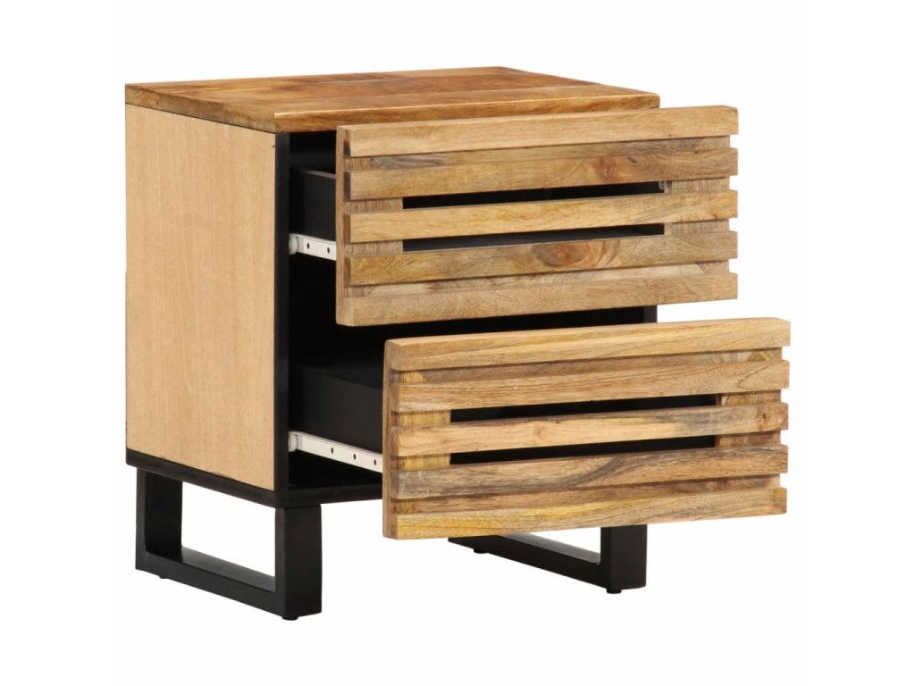 - Masivní mangovníkové dřevo: Masivní mangovníkové dřevo je pevné tropické tvrdé dřevo, ze kterého se vyrábí robustní nábytek. Krásná kresba dřeva propůjčuje každému kusu nábytku jeho jedinečný a od všech ostatních lehce odlišný vzhled.