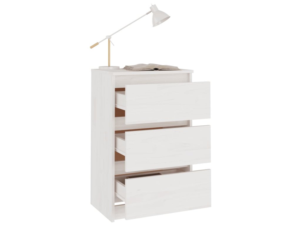 Noční stolek je vyrobený z masivního borového dřeva, které mu zajišťuje pevnost, odolnost a dlouhou životnost. Tři zásuvky poskytují dostatek úložného prostoru, abyste si mohli přehledně uspořádat drobné předměty a mít je na dosah. Tento noční stolek se navíc snadno čistí pomocí vlhkého hadříku.