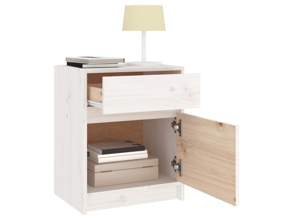 Noční stolek je vyrobený z masivního borového dřeva, takže je pevný a stabilní. Toto dřevo dokáže unést značnou váhu a zároveň výborně odolává opotřebení i působení času. Zručné řemeslné zpracování a nádherná kresba dřeva od sebe jednotlivé kusy lehce odlišují. Noční stolek navíc poskytuje spoustu úložného prostoru pro přehledné uspořádání všech důležitých věcí, které chcete mít po ruce.