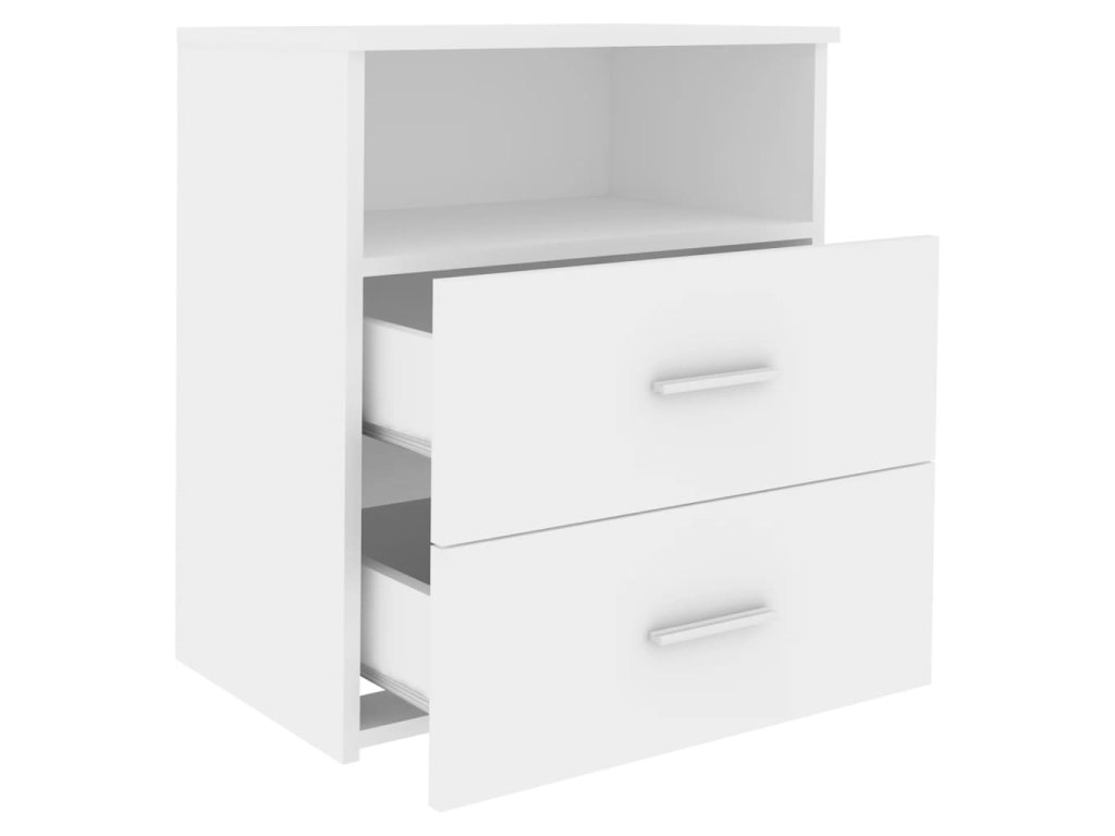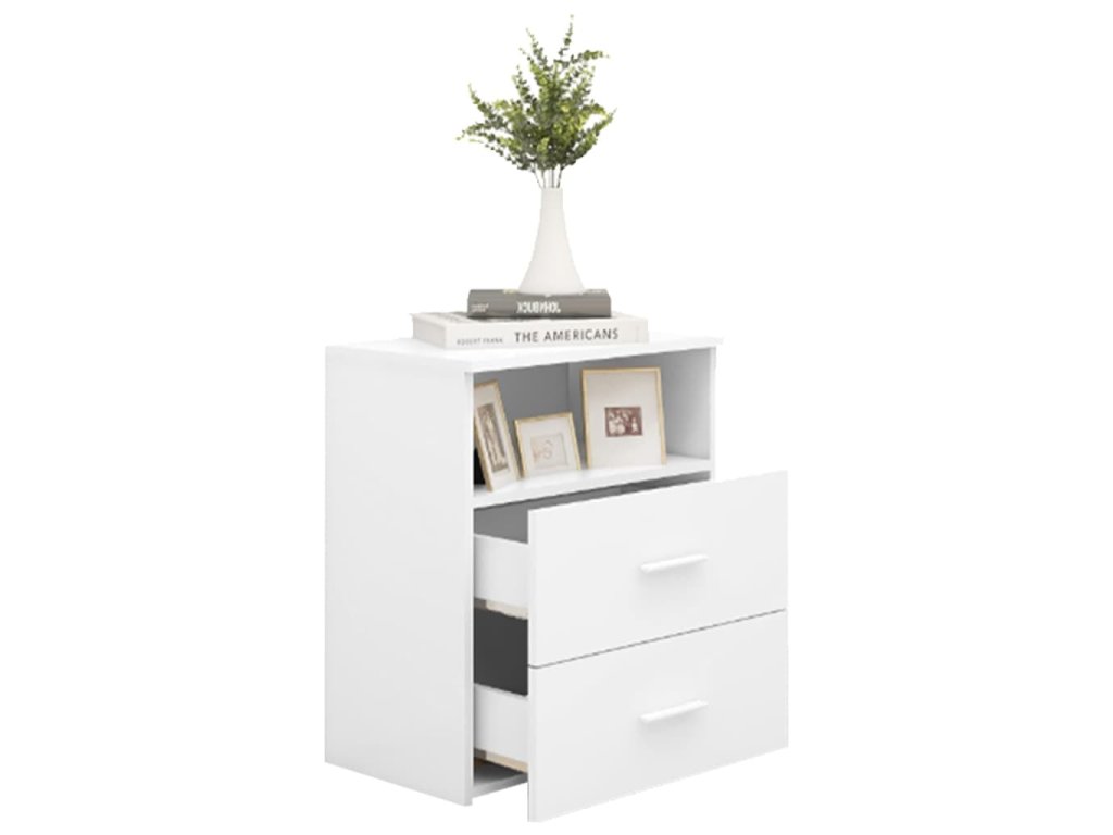 Noční stolek je stabilní a robustní. Navíc je vybavený dvěma zásuvkami a jednou policí, které poskytují spoustu úložného prostoru, kam si můžete přehledně a na dosah ruky uspořádat svoje věci. Snadno ho očistíte vlhkým hadříkem.