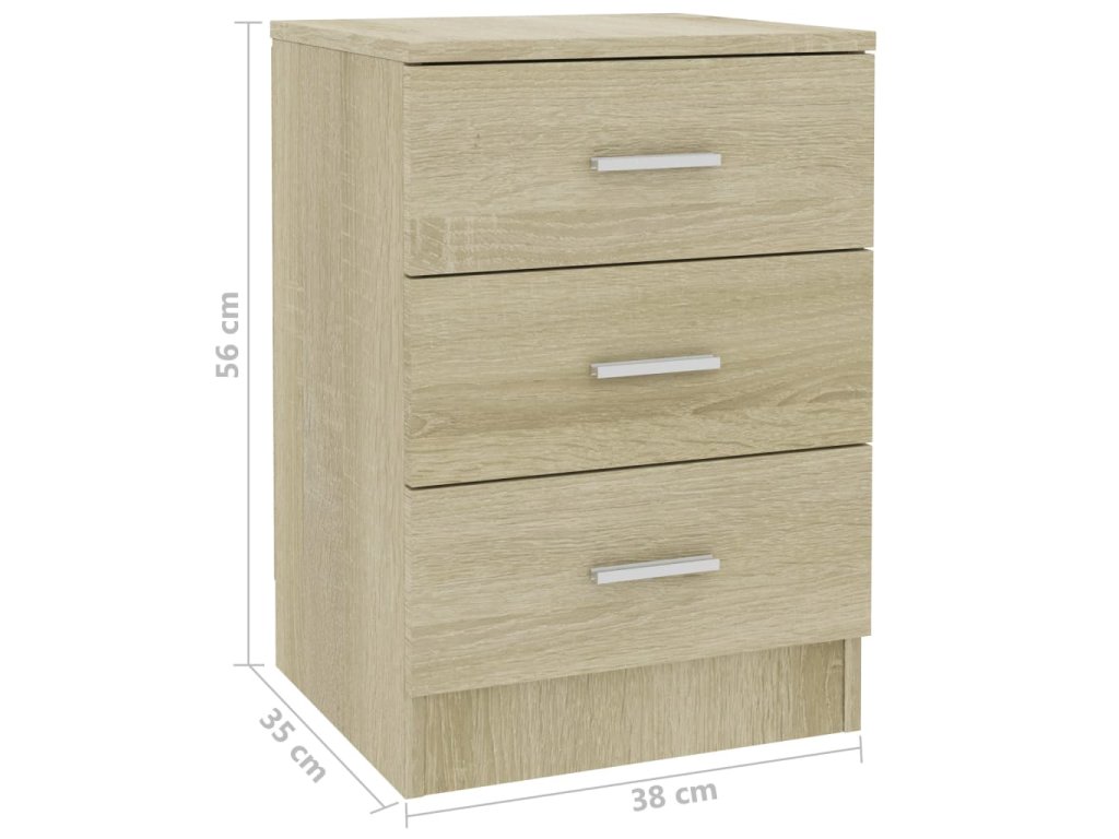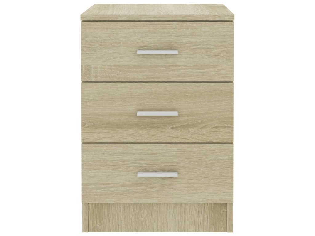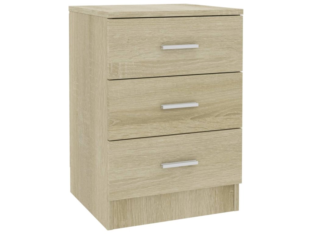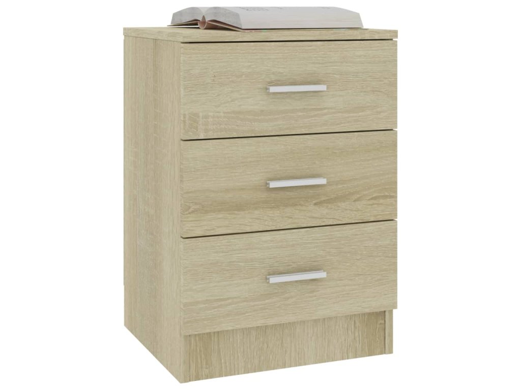 Noční stolek je vyrobený z kvalitní dřevotřísky, je proto robustní, odolný a všestranný. Vzhledem k jeho univerzálnímu designu ho můžete uplatnit také jako stolek k pohovce v obývacím pokoji. Tři zásuvky vám poskytnou spoustu úložného prostoru pro vaše časopisy, knihy, dálkové ovladače a mnoho dalších předmětů, ve kterých chcete mít pořádek, ale přitom je mít na dosah ruky. Noční stolek se navíc dá snadno čistit vlhkým hadříkem.