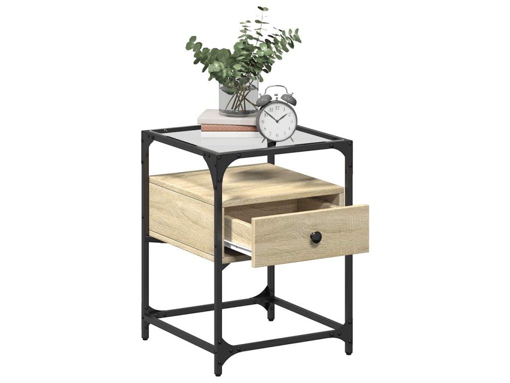 - Skleněná horní deska: Horní deska tohoto odkládacího stolku poskytuje dostatečnou plochu pro servírování občerstvení a nápojů či pro vystavení váz, mís s ovocem nebo jiných dekorací.