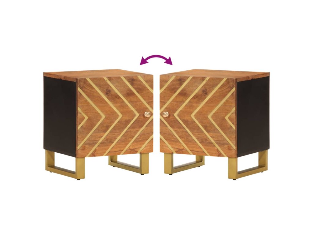 - Materiál: masivní mangovníkové dřevo s akáciově hnědou povrchovou úpravou, MDF, železo