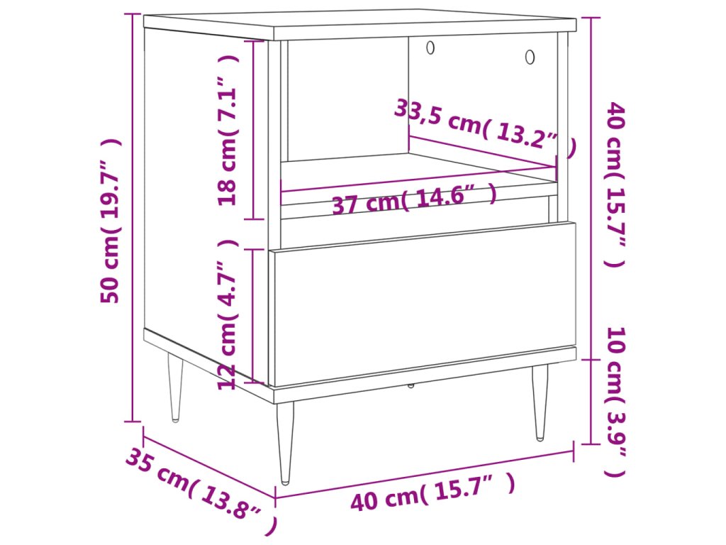 - Odolný materiál: Kompozitní dřevo je mimořádně kvalitní, má hladký povrch a vyznačuje se pevností, stabilitou a odolností proti vlhkosti. Noční stolek je vyroben z kompozitního dřeva a lze ho snadno očistit vlhkým hadříkem.