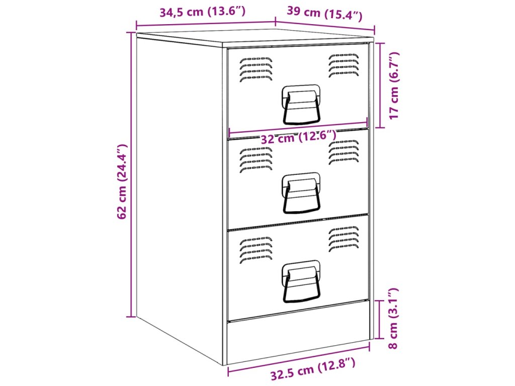 - Rozměry: 34,5 x 39 x 62 cm (Š x H x V)