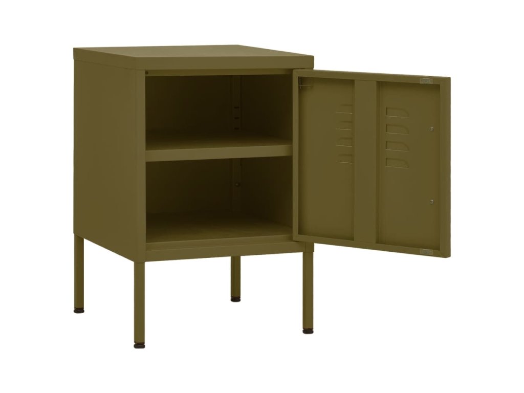 Noční stolek je vyrobený z oceli, takže je odolný a snadno se čistí. Obsahuje 1 nastavitelnou přihrádku a 1 zámek, poskytne vám tedy spoustu místa k bezpečnému uložení vašich knížek a dalších důležitých maličkostí tak, abyste je měli na dosah ruky. Nivelační nohy ve spodní části umožňují nastavit výšku podle vašich potřeb.