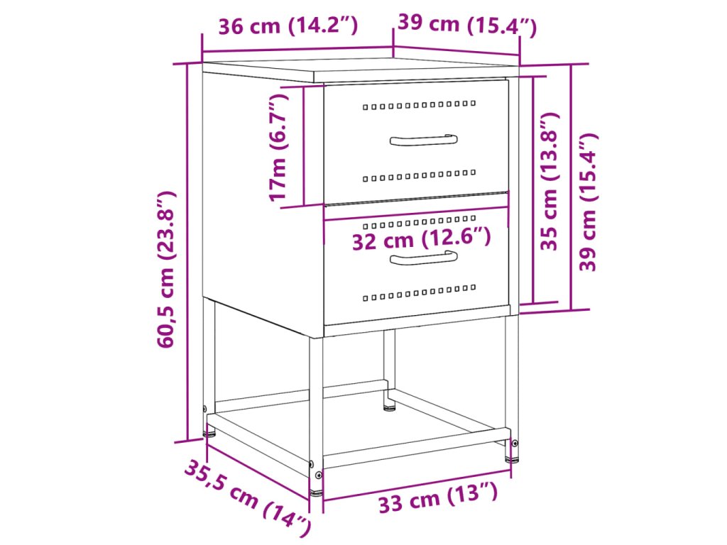 - Snadno se čistí: Ocelový noční stolek je odolný proti vlhkosti a snadno se čistí vlhkým hadříkem.