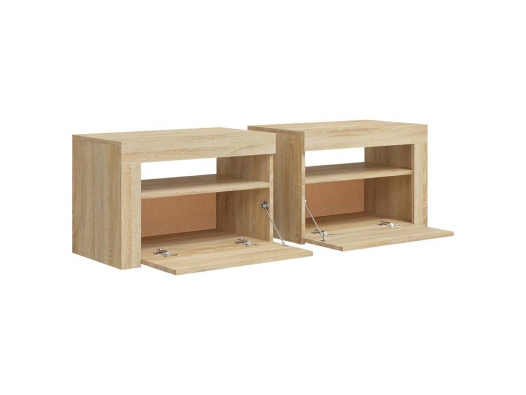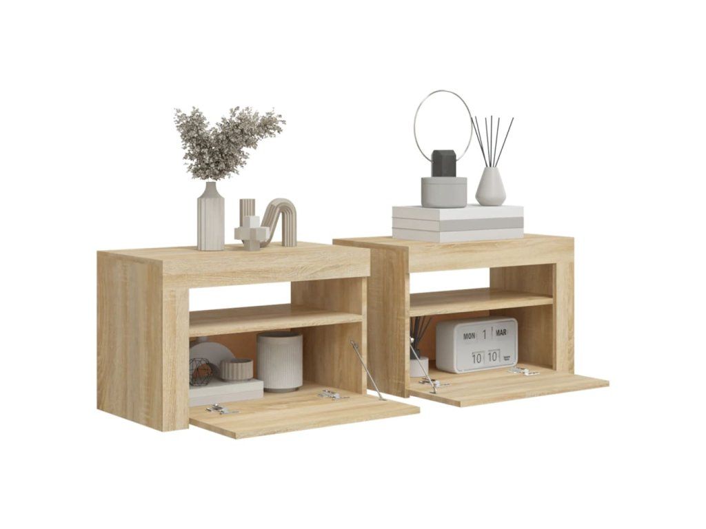 - RGB LED osvětlení: Tyto noční stolky jsou vybaveny RGB LED světly s několika různými nabídkami, které vám umožní změnit barvu nebo nechat světla přizpůsobit automaticky. LED osvětlení podtrhuje moderní vzhled skříňky a zdůrazňuje její trendy styl.